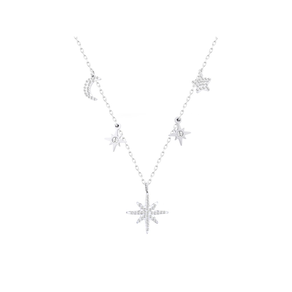Retiazka z chirurgickej ocele, hviezdička, mesiac so zirkónmi z kvalitnej nehrdzavejúca oceľ dokonale doplní váš každodenný outfit.