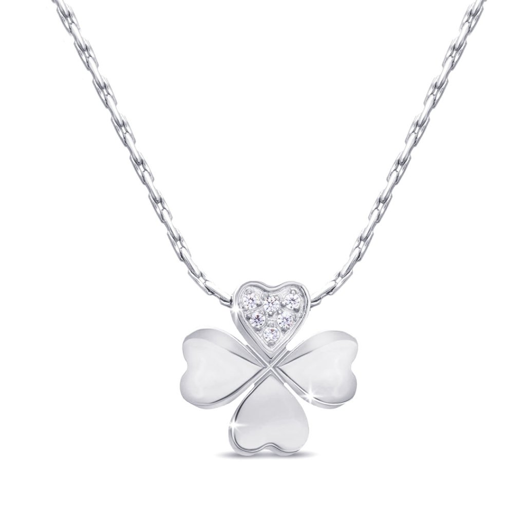 Elegantná retiazka s príveskom v tvare štvorlístka zaujme nielen svojím lesklým prevedením, ale aj srdiečkom osadeným čírymi zirkónmi. Symbol šťastia a lásky je ideálnym darčekom pre každú príležitosť. Vďaka jemnému dizajnu sa hodí ako na denné nosenie, tak aj k slávnostným outfitom.