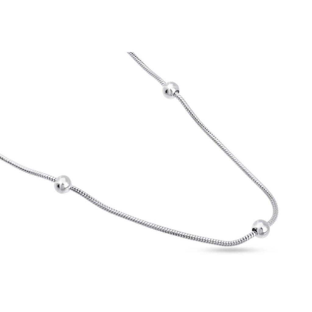 Minimalistická retiazka z vysoko kvalitnej chirurgickej ocele ozdobená lesklými guľôčkami predstavuje jemný a moderný šperk na každodenné nosenie. Elegantný hadí vzor dodáva šperku štýl a vďaka predĺženiu sa prispôsobí rôznym dĺžkam. Perfektná voľba samostatne aj ako základ pre prívesky.