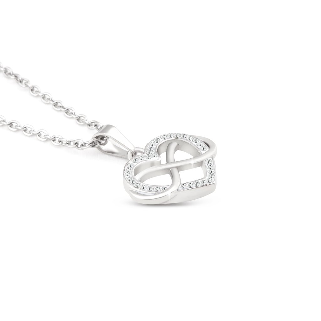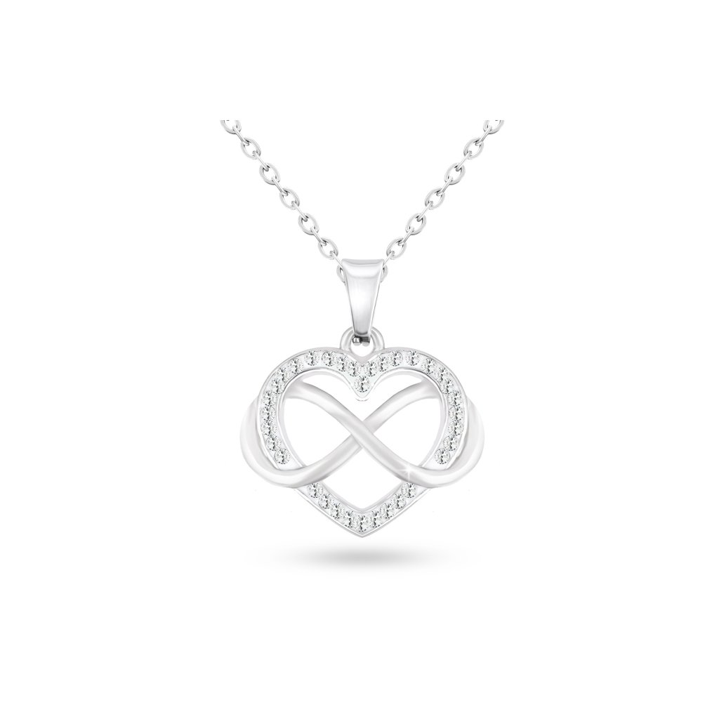 Decentná retiazka s príveskom srdca s nekonečnom a zirkónmi je vyrobená z kvalitnej z nehrdzavejúcej ocele. Je to univerzálny doplnok každého oblečenia. Náhrdelník je veľmi vkusný. Zapína sa na karabínku.Tento výrobok neobsahuje ťažké kovy.