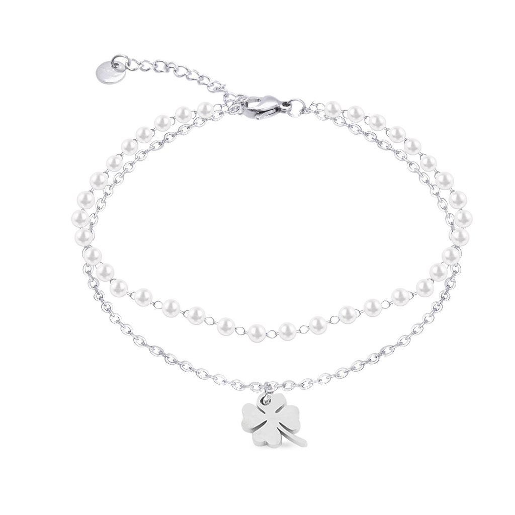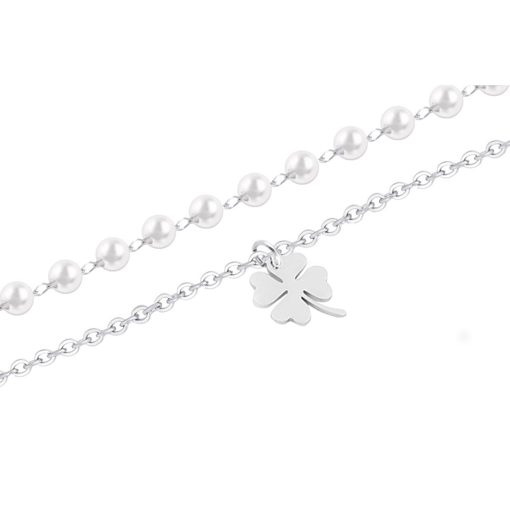 - Retiazka na nohu z chirurgickej ocele, dvojradová s perličkami - štvorlístok.