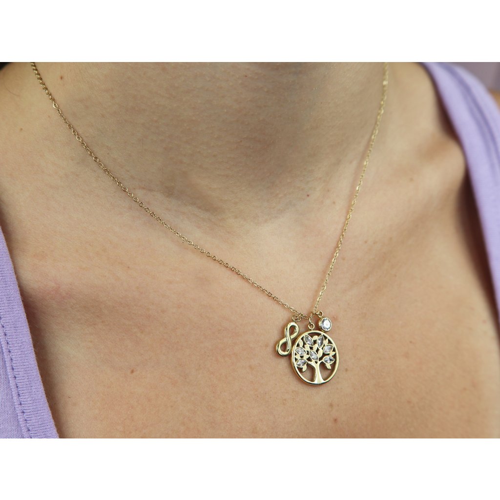 - Predveďte svoj osobitý štýl s retiazkou z chirurgickej ocele, pozlátenou 14-karátovým zlatom. Táto úžasná retiazka s motívom stromu života a symbolom nekonečna je ručne vyrobená z chirurgickej ocele najvyššej kvality a pozlátená 14-karátovým zlatom pre luxusný povrch. Okrem toho sa na nej vynímajú aj zirkónové kamene, ktoré sa pri nosení na slnku alebo v interiéri trblietajú ako diamanty. Či už sa chystáte na vonkajšie dobrodružstvo alebo sa zúčastňujete výnimočných udalostí, ako sú svadby a stužkové slávnosti, tento predmet určite dokonale doplní akýkoľvek outfit! Zapína sa na karabínku.