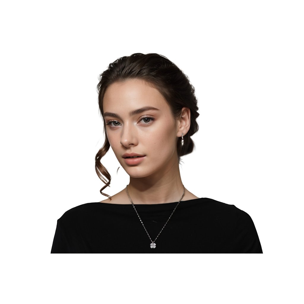 Decentná a jemná retiazka z chirurgickej ocele s príveskom, štvorlístok s bielym podfarbením a zirkónmi 3001710