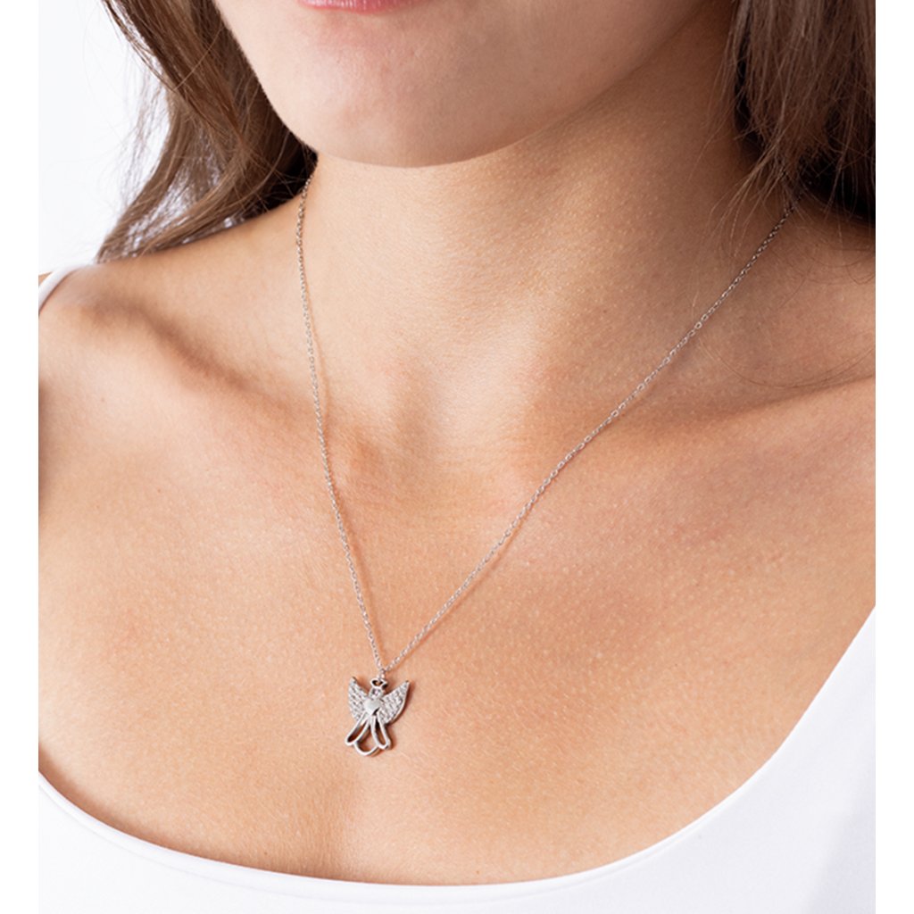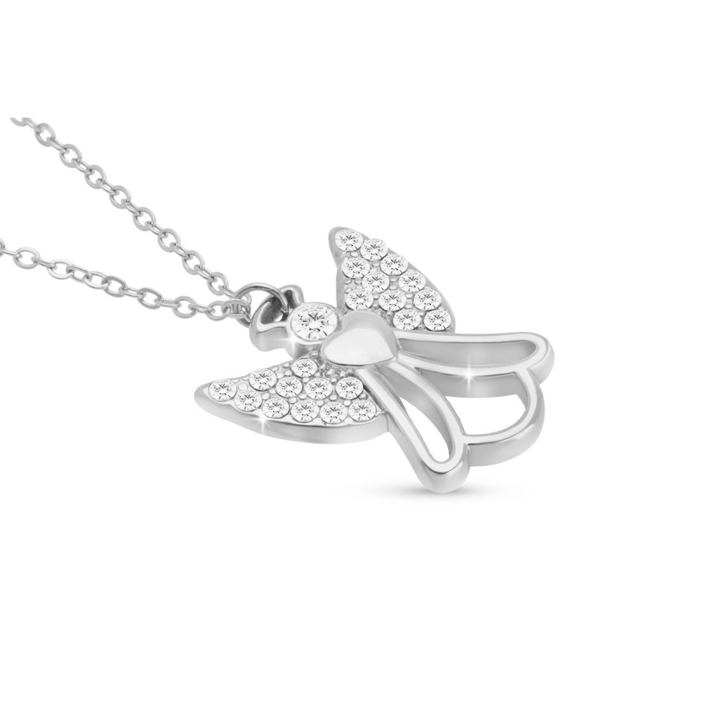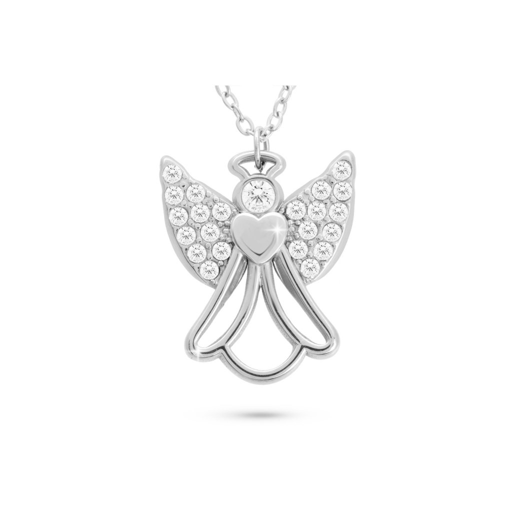 - Vylepšite svoj vzhľad touto jemnou a elegantnou retiazkou z chirurgickej ocele s príveskom anjela, ktorý je vykladaný kubickými zirkónmi. Vďaka striebornej farbe nehrdzavejúcej ocele je ideálnym doplnkom k akémukoľvek oblečeniu, ktorému dodá trochu iskry bez toho, aby bolo príliš odvážne. Jeho antialergické vlastnosti navyše zabezpečujú, že citlivá pokožka nie je podráždená.