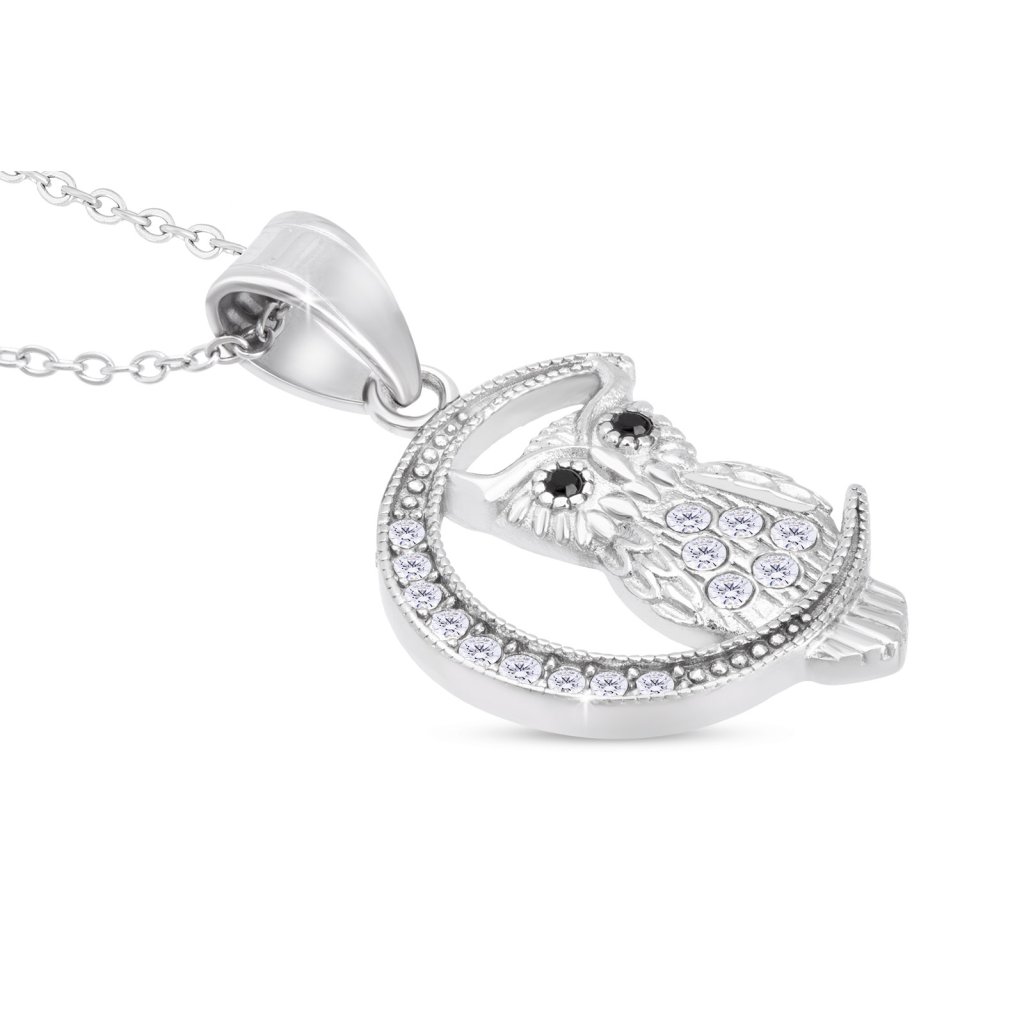 - Decentná a jemná retiazka z chirurgickej ocele s príveskom, sovička na mesiaci so zirkónmi.