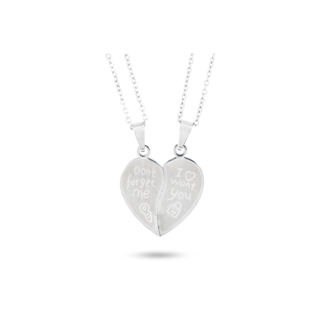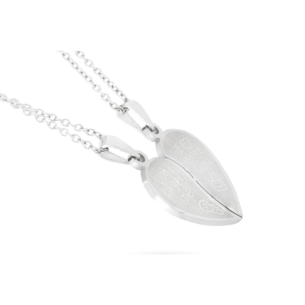 VERONA 1693 Retiazka z chirurgickej ocele s príveskom pre páry, polené srdce s nápismi 3001693
