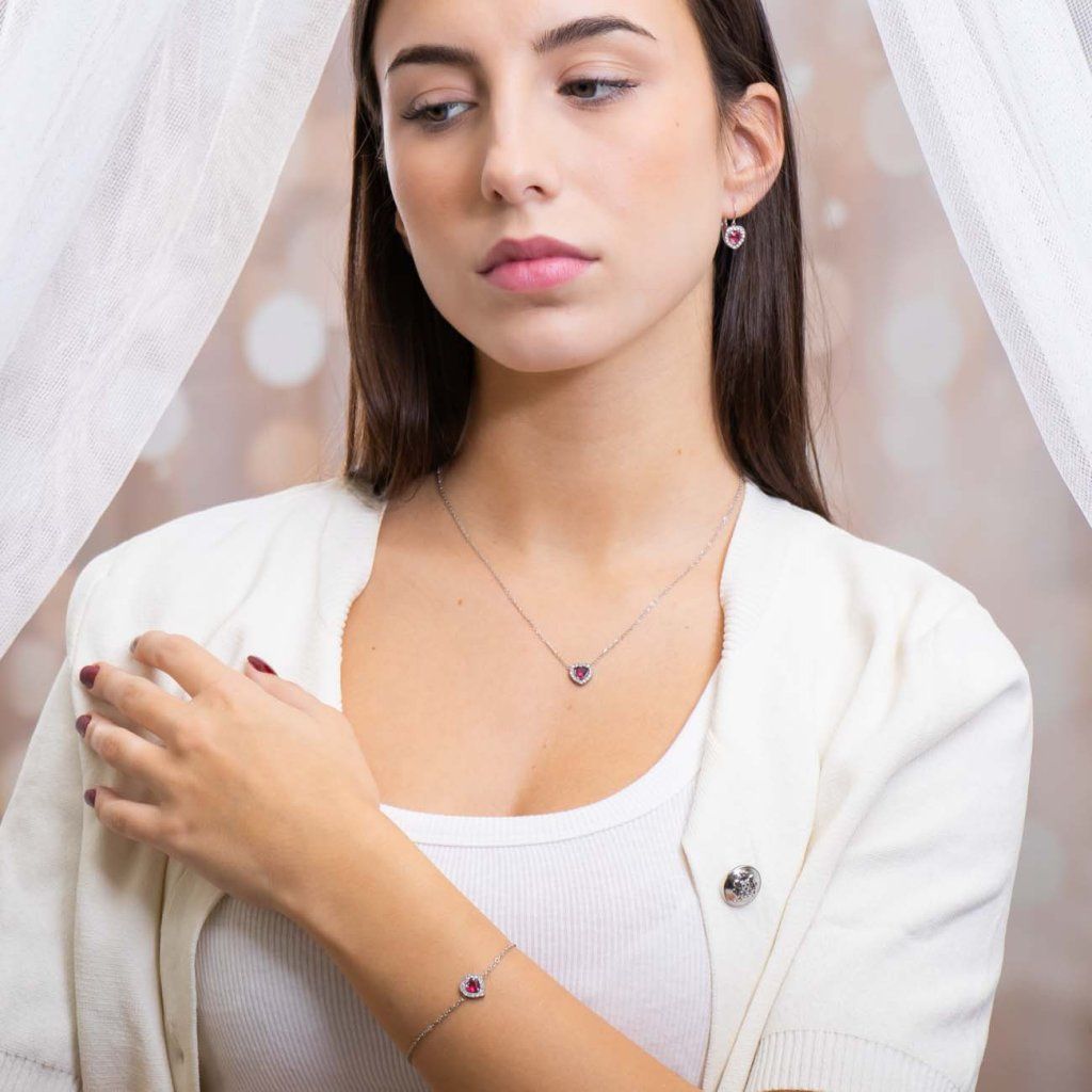 VERONA 1823 Retiazka s príveskom srdiečka, ružový zirkón