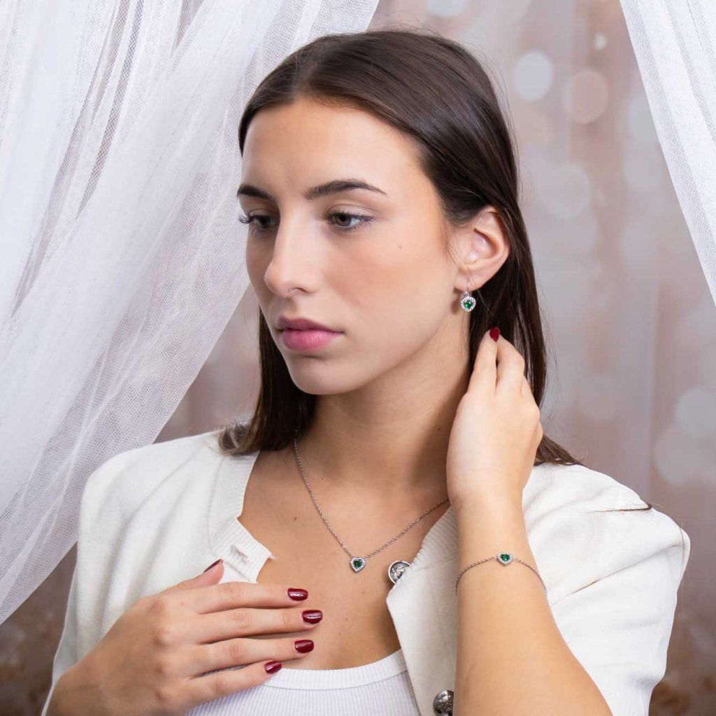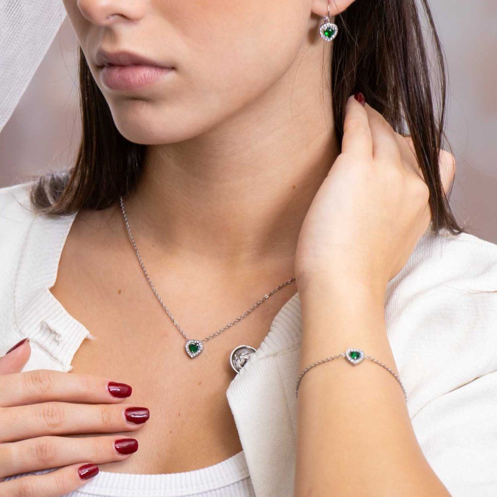 VERONA 1823-1 Retiazka s príveskom srdca, zelený zirkón