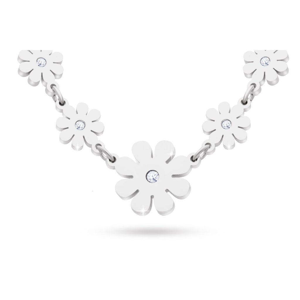 Retiazka z chirurgickej ocele s príveskami, kvety ozdobené zirkónmi 3001713