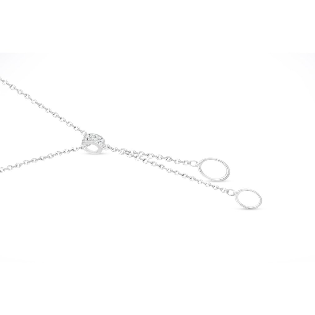 Veľmi elegantná retiazka v tvare písmena ypsilon s krúžkami a zirkónmi.