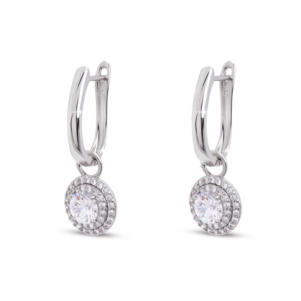 Ródiované náušnice s dvoma kruhmi zirkónov a jedným väčším 1003020