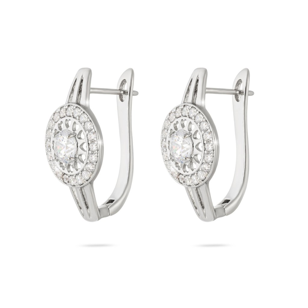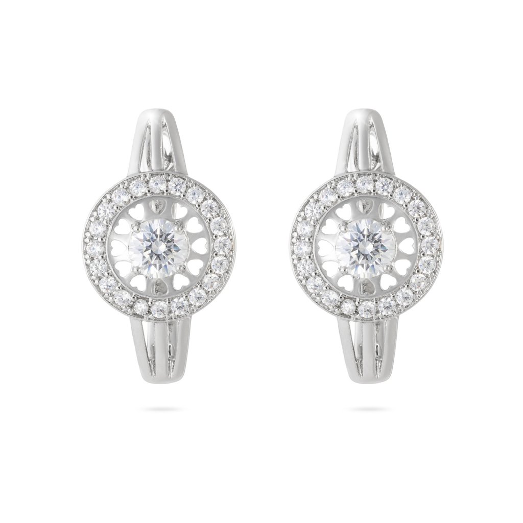 - Ródiované náušnice visiace, kruh ozdobený srdiečkami a zirkónmi.