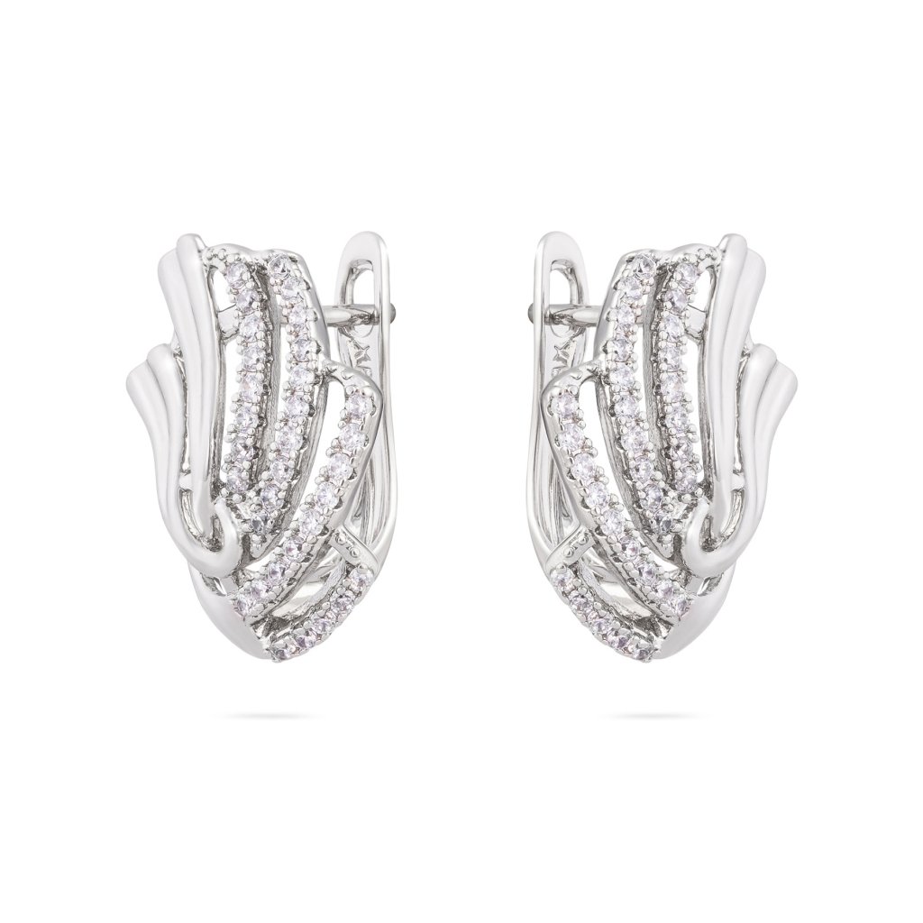 Ródiované náušnice visiace, vejáriky ozdobené pásmi zirkónov 1002682