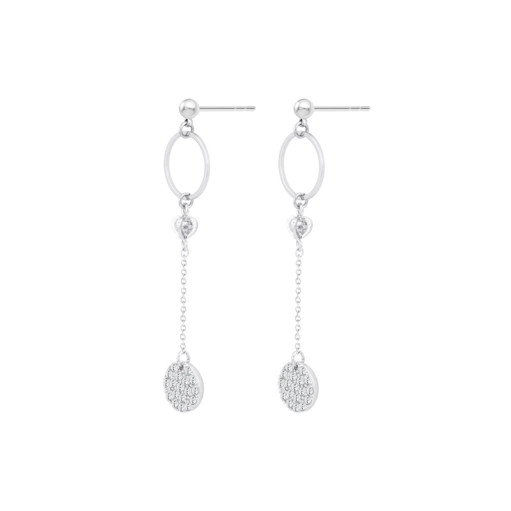 Ródiované visiace náušnice, kruh s dlhou retiazkou a kruh so zirkónmi 1002381