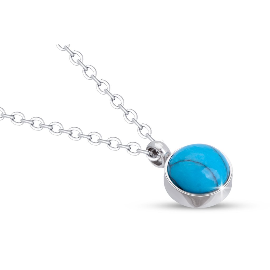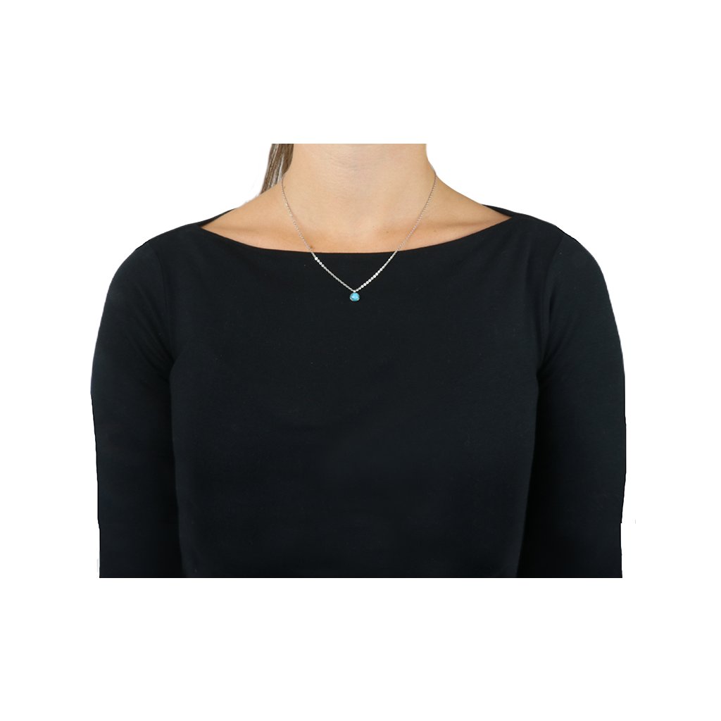 - Ródiovaná retiazka s príveskom, drobný umelý kameň – modrej farby.