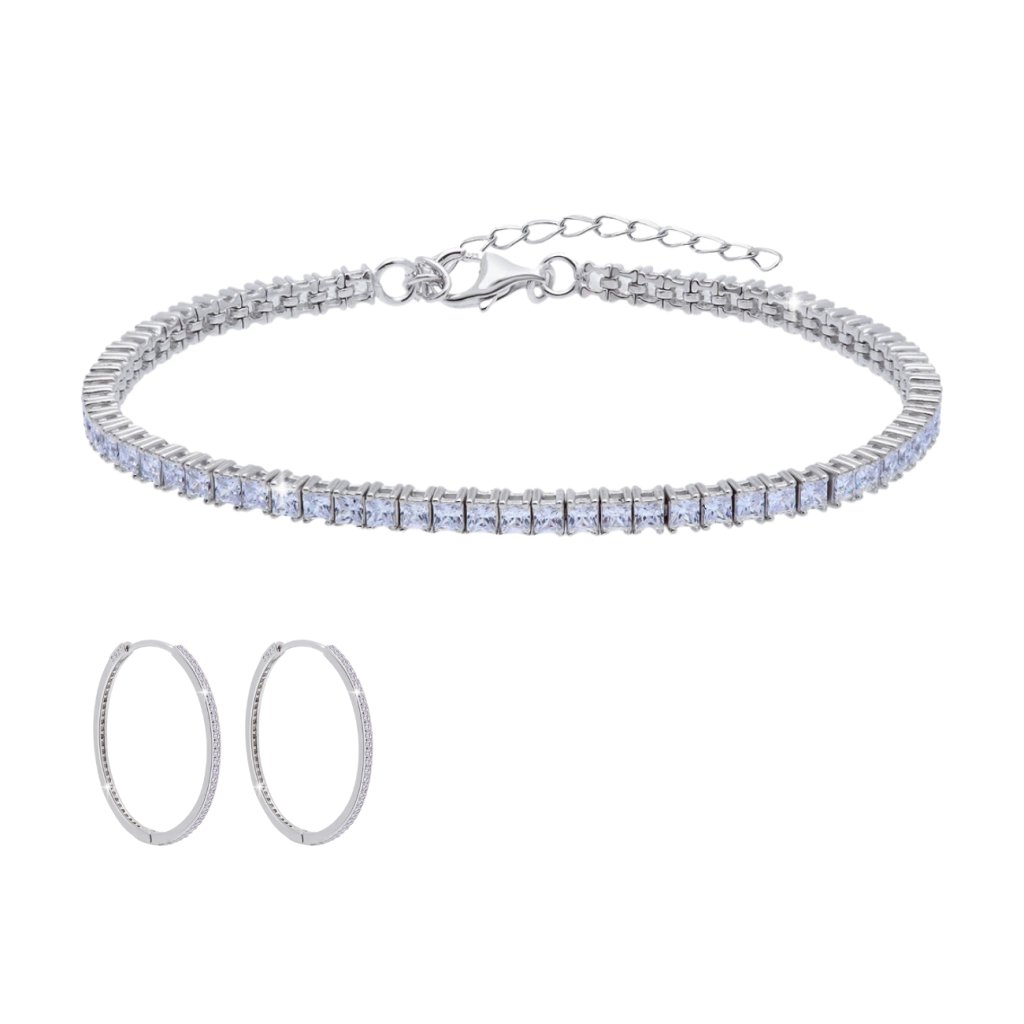 SET 355 Strieborný tenisový náramok a kruhové náušnice so zirkónmi