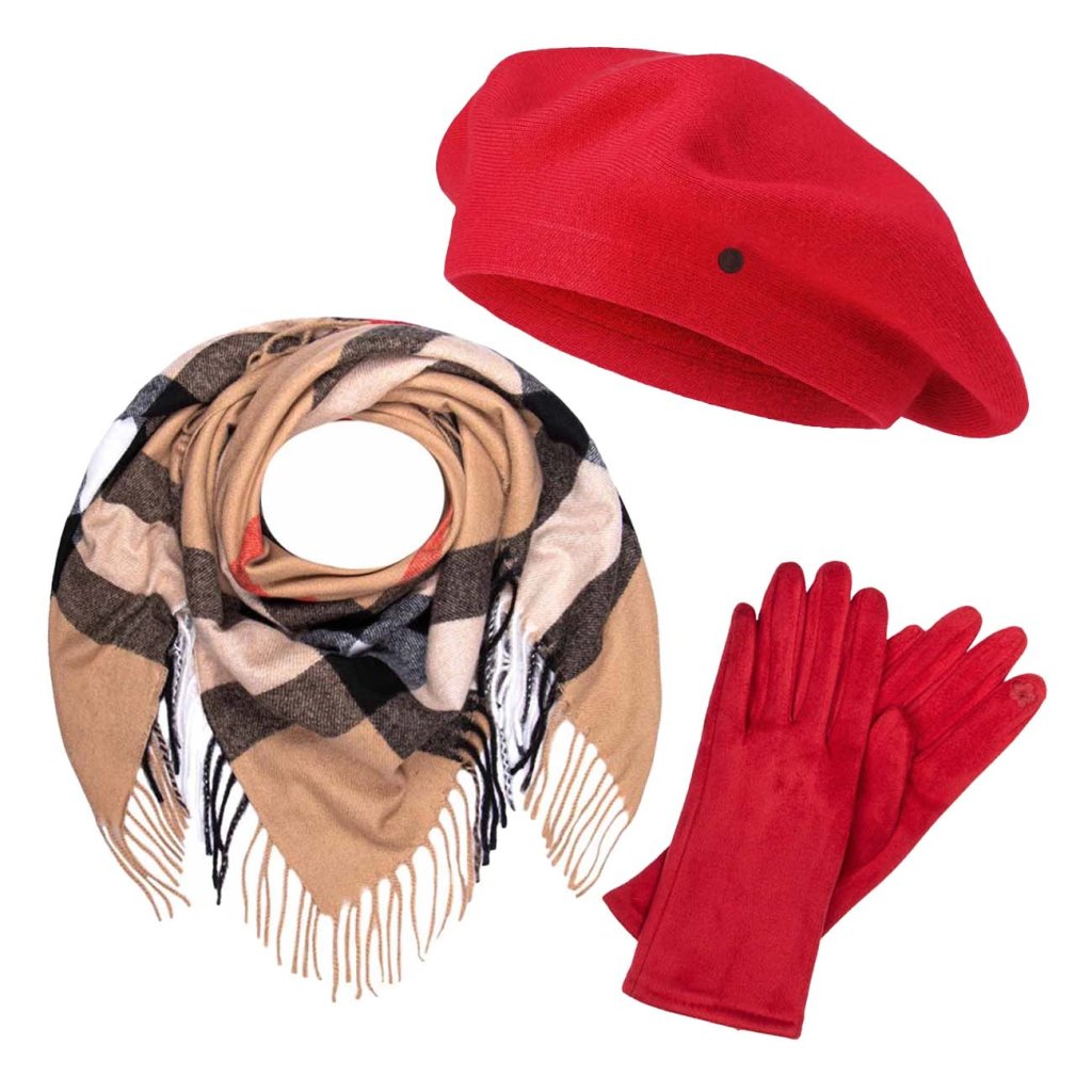 Set 366 módnych červených harmonických doplnkov – baret, šál a rukavice