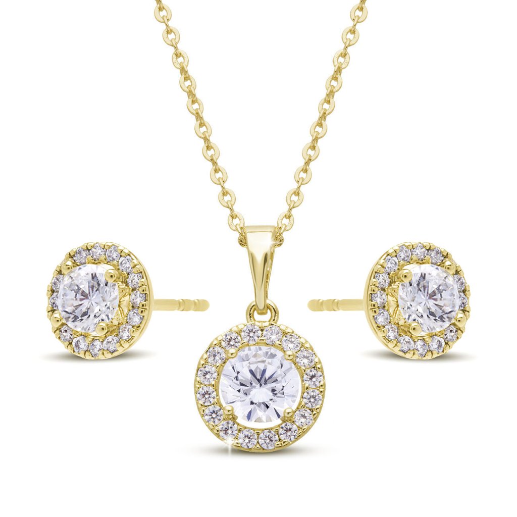 Pozlátený set 14k zlatom - retiazka s príveskom + náušnice. Set je vyrobený z rhodiovaného kovu doplnený jemnými zirkónmi a vyleštený k absolútnej dokonalosti. Táto súprava je skvelou voľbou nielen na slávnostnejšie príležitosti, ale aj na doplnenie jednoduchých šiat alebo obľúbeného topu. Vďaka jemnosti tejto súpravy pôsobí veľmi elegantne.