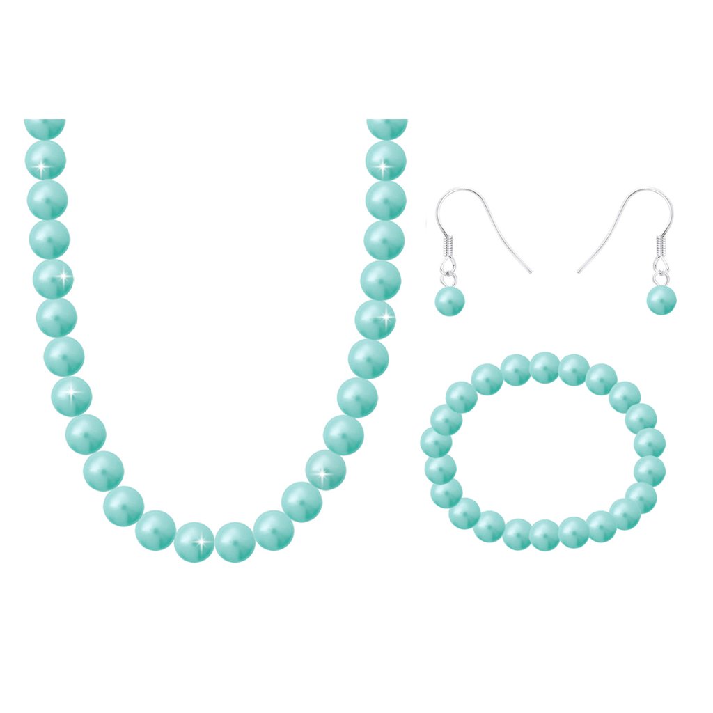 - Výrazný a veľmi elegantný set z bižutérneho kovu zdobený umelými tyrkysovými perličkami.