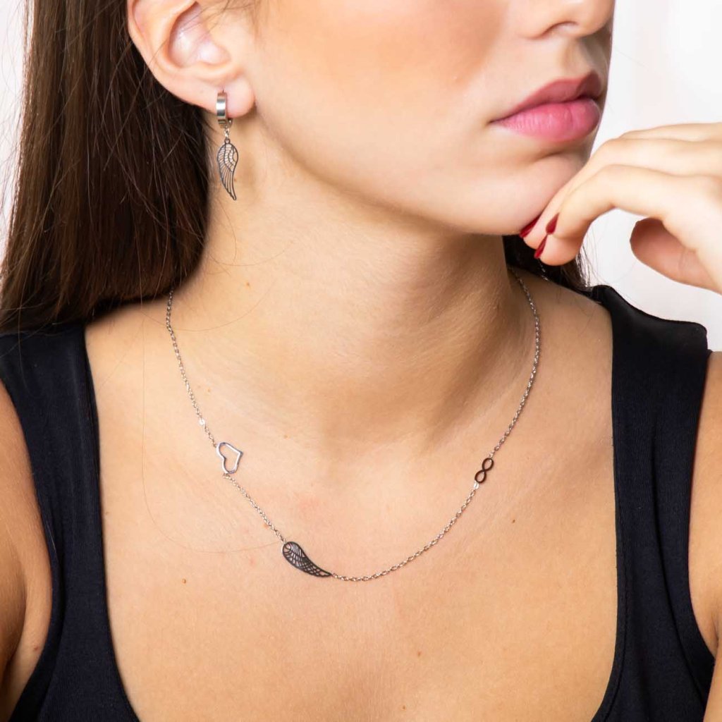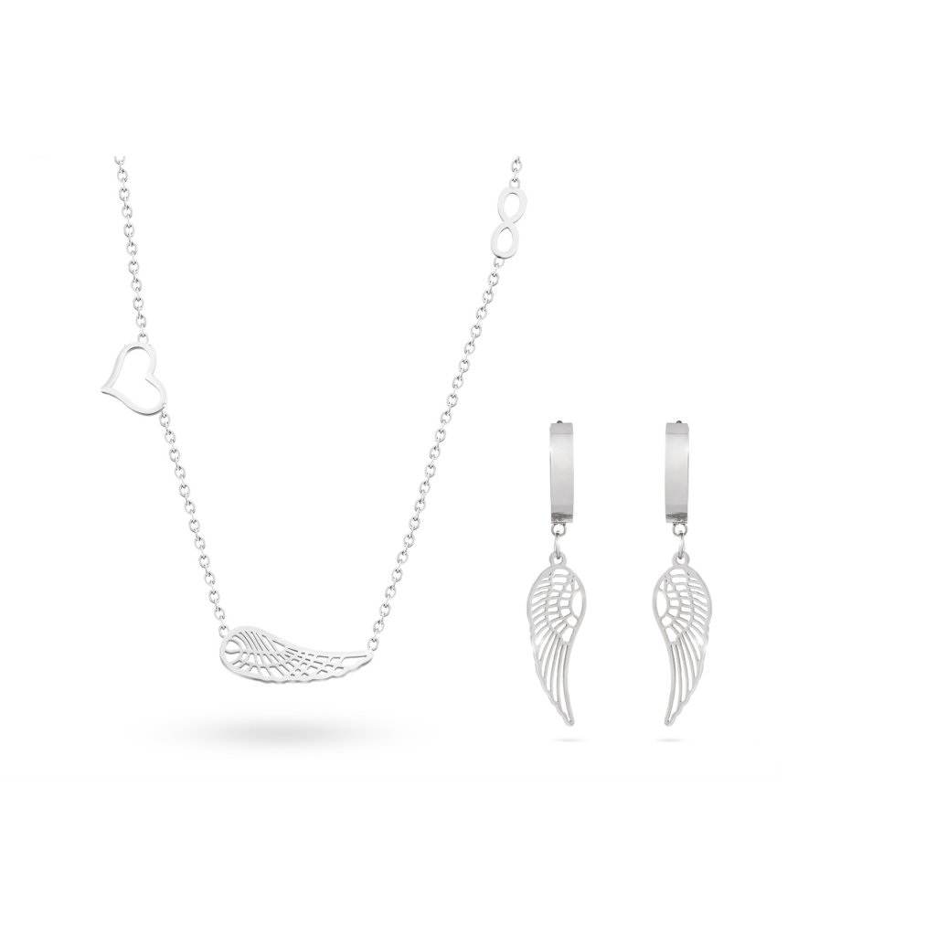 Súprava z chirurgickej ocele s anjelskými krídlami za bezkonkurenčnú cenu.Táto súprava je skvelou voľbou nielen na slávnostnejšie príležitosti, ale aj na doplnenie jednoduchých šiat alebo obľúbeného topu. Vďaka prepracovanosti tejto súpravy pôsobí veľmi elegantne a jemne.
