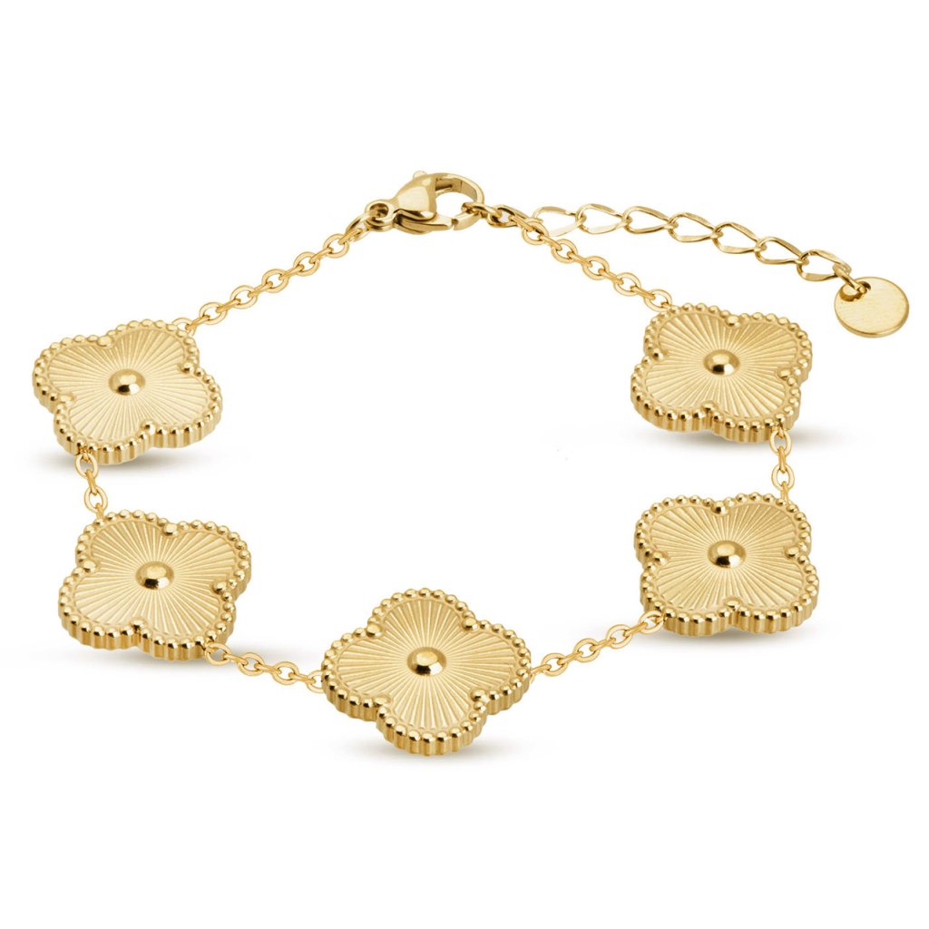 - Súprava z chirurgickej ocele, pozlátená 14k so vzorom kvetiny, náramok + náušnice puzetky.