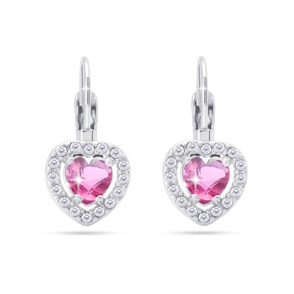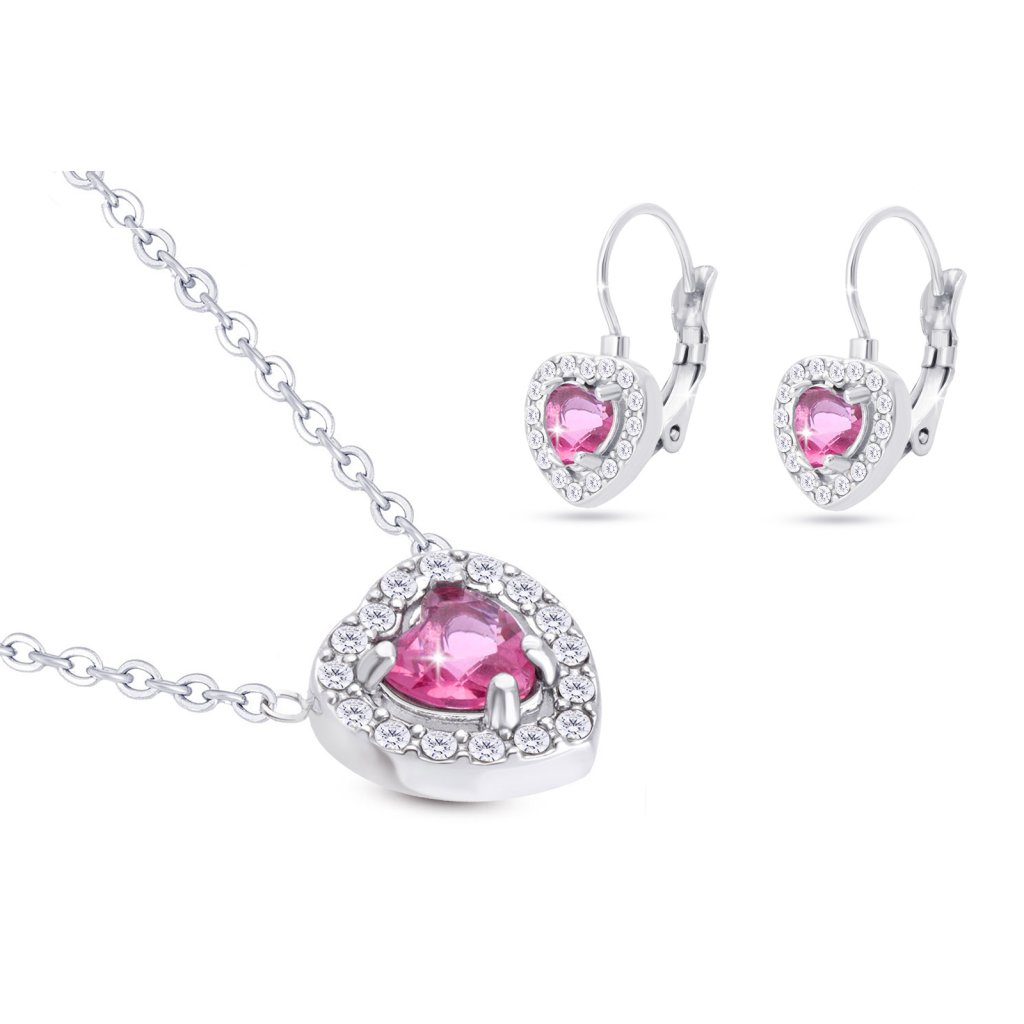 VERONA 306 Set retiazka a visiace náušnice, srdce osadené ružovým zirkónom