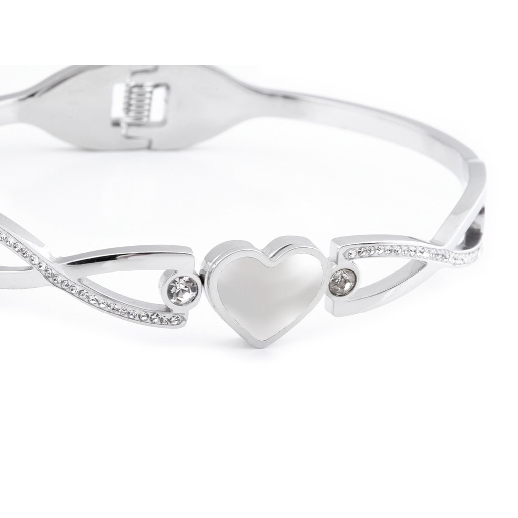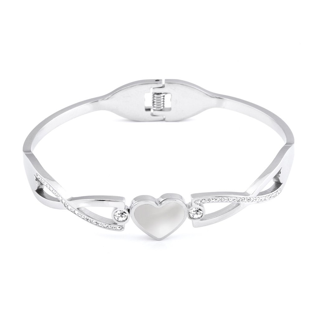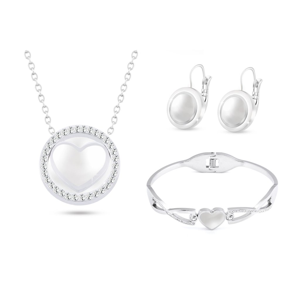 VERONA 169 Set z chirurgickej ocele, retiazka + visiace náušnice + náramok, ozdobený srdcom s bielou perleťou 169