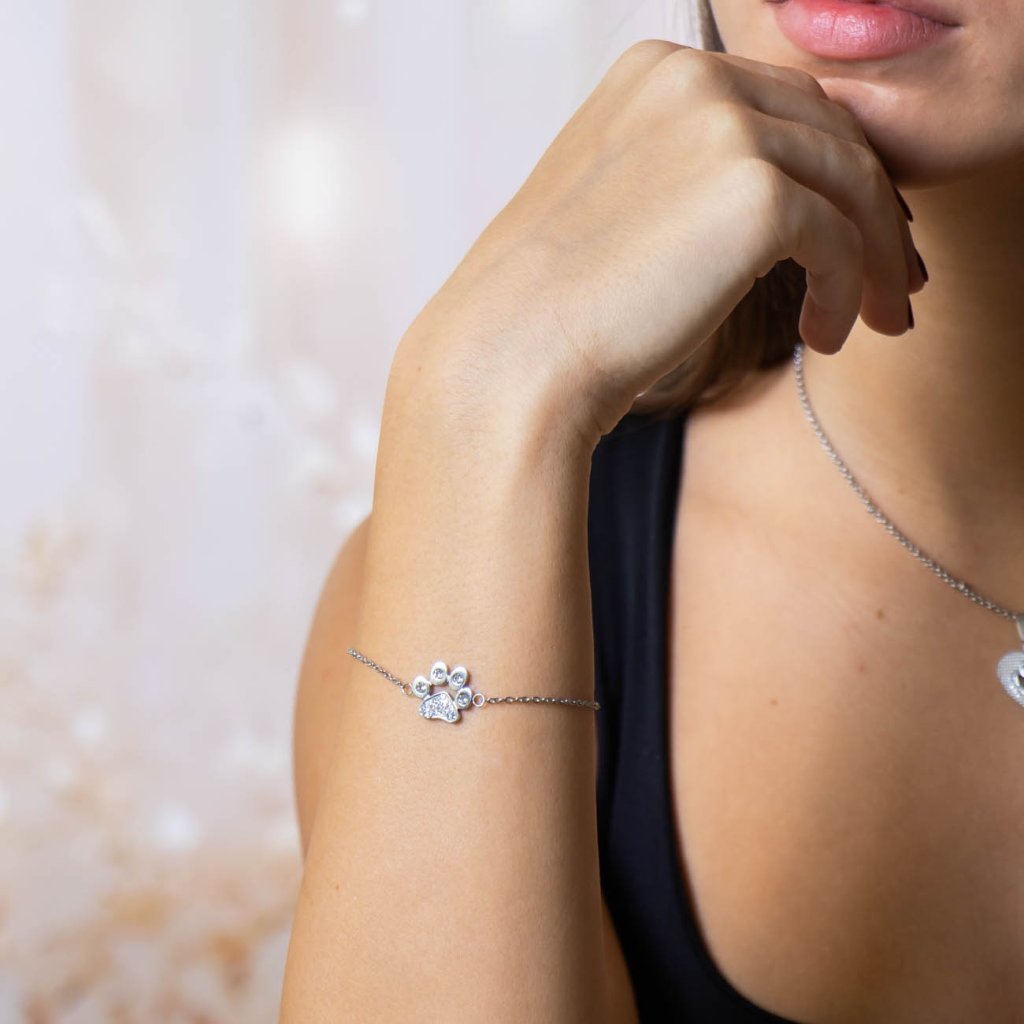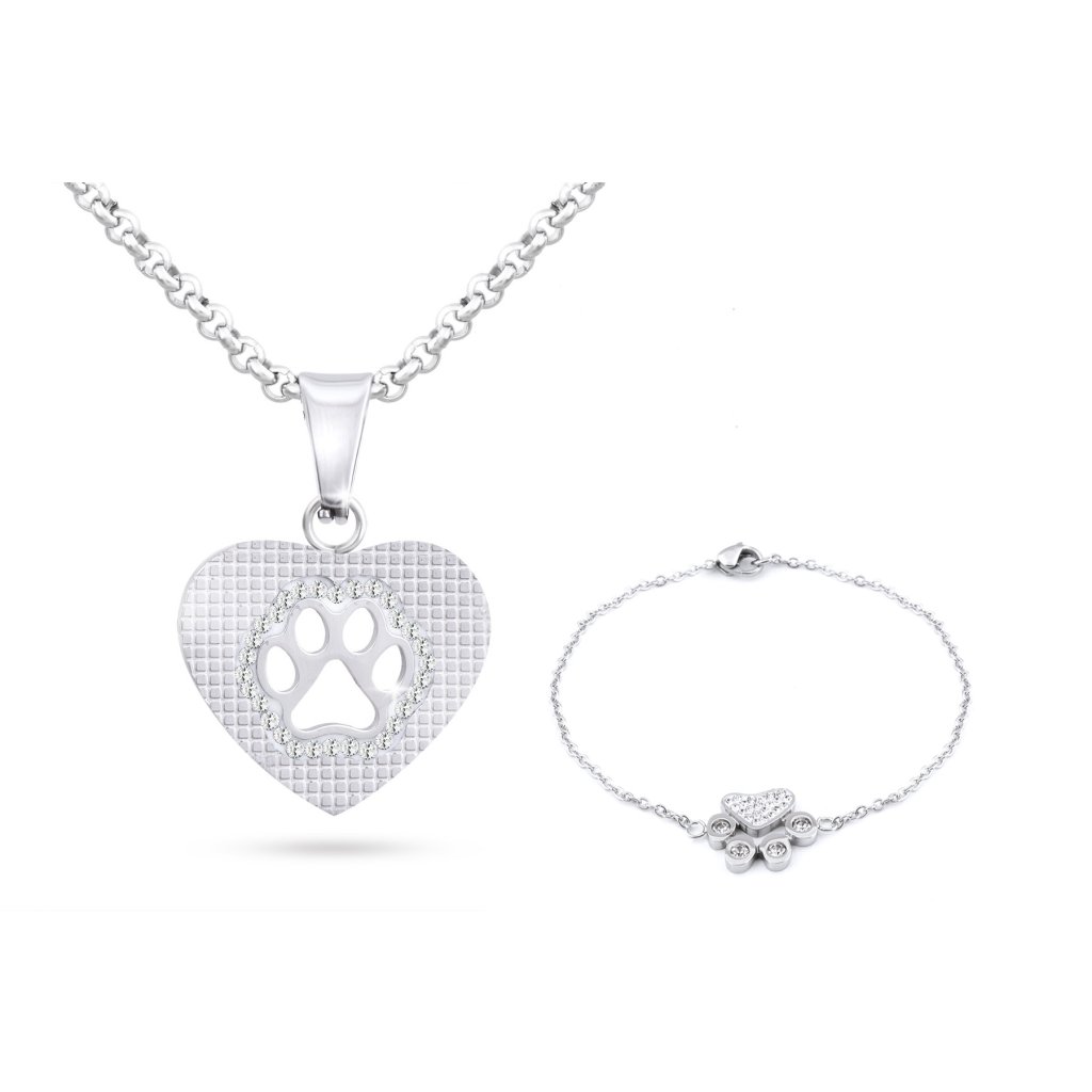 Súprava z chirurgickej ocele labka v srdci, retiazka + náramok so zirkónmi 197