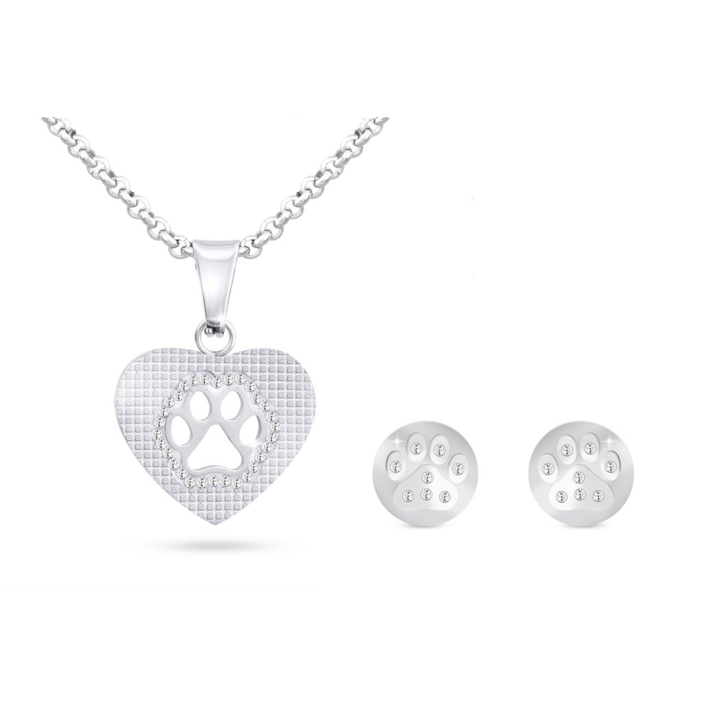Súprava z chirurgickej ocele labka v srdci, retiazka + náušnice so zirkónmi 196