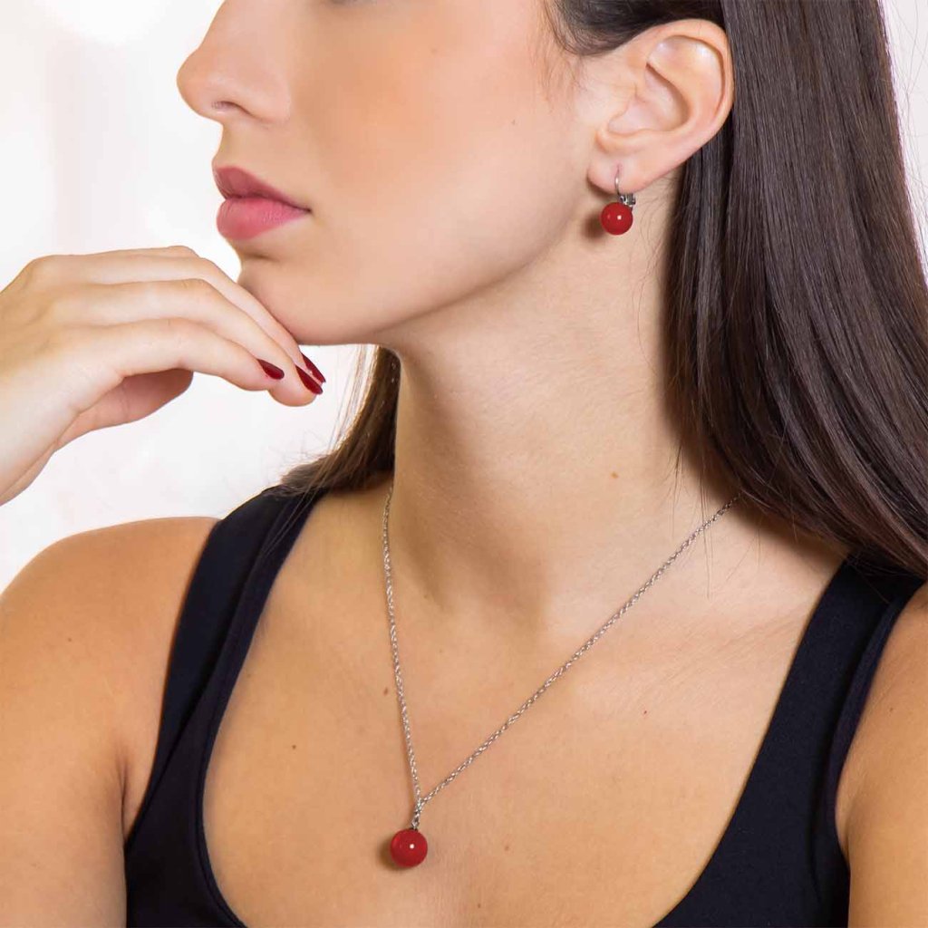 Súprava z chirurgickej ocele náušnice+retiazka, perla-červená 3001308
