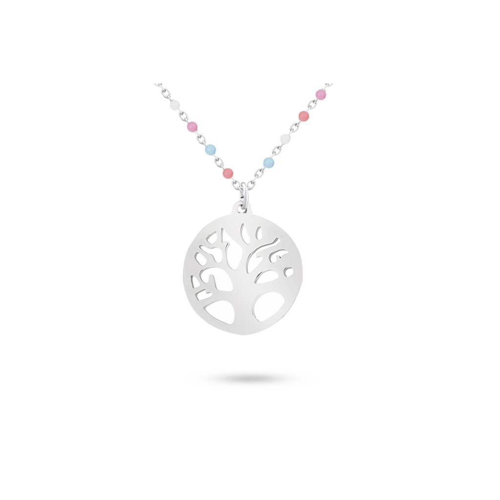 Súprava z chirurgickej ocele strom života, retiazka + náušnice s farebnými guličkami 187