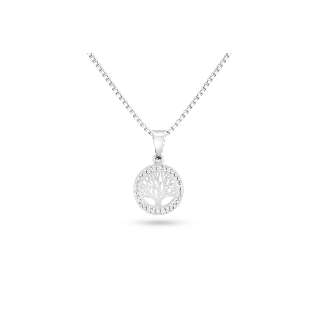 Súprava z chirurgickej ocele strom života, retiazka + náušnice so zirkónmi 100012