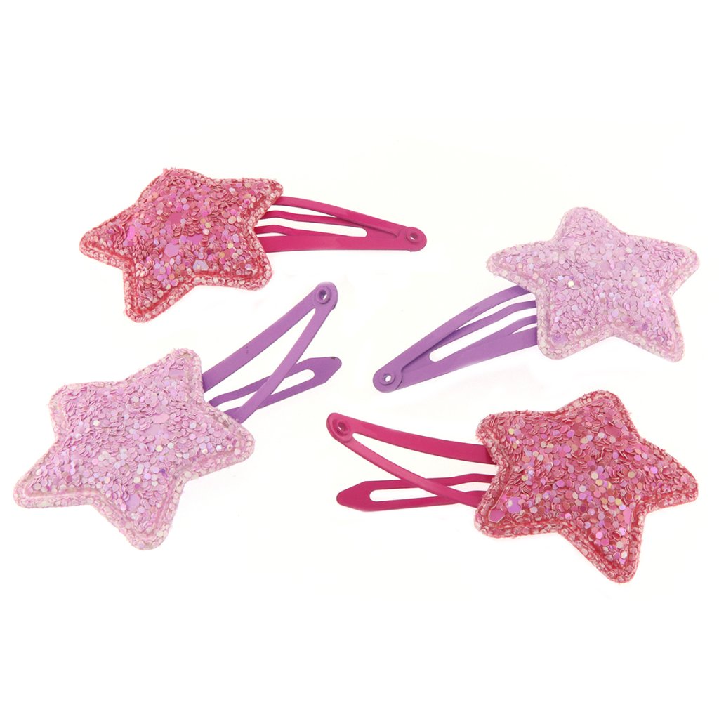 Sponky do vlasov pre deti s trblietavými hviezdičkami 4 ks, fialovej a ružovej farby 8000867