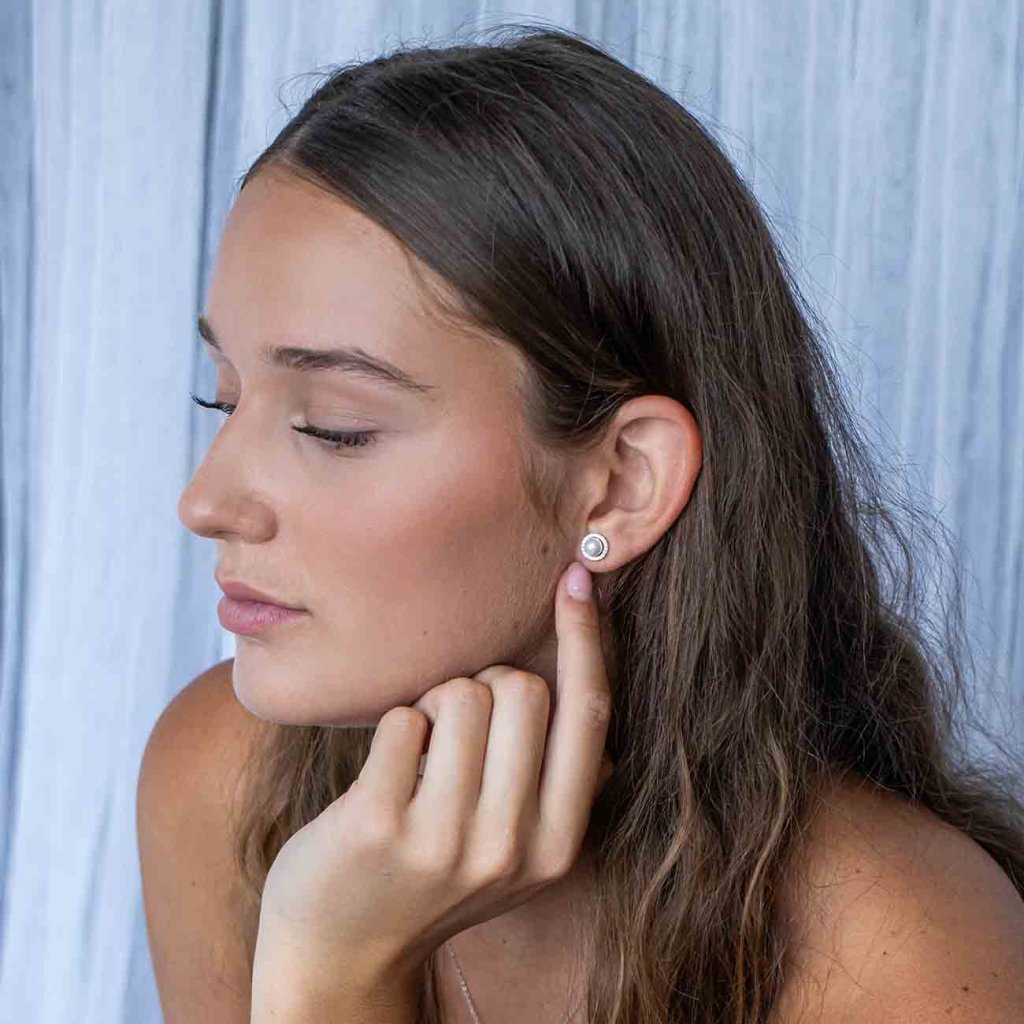 Elegantné strieborné náušnice s výraznou bielou perlou uprostred, obklopenou jemnými zirkónmi, dodávajú šperku luxusný nádych a klasický štýl. Dokonalá voľba pre slávnostné príležitosti aj každodenné nosenie.