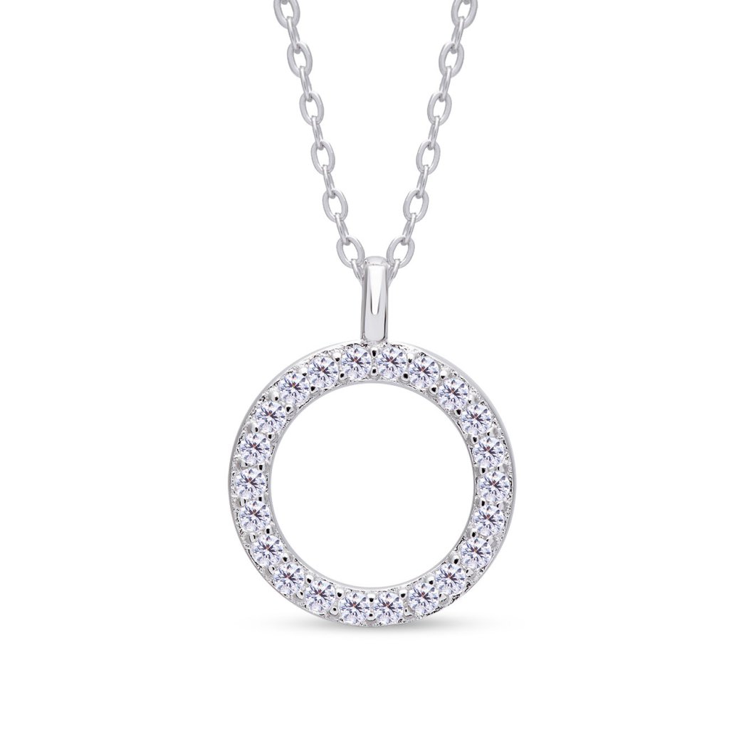 Minimalistická strieborná retiazka s precízne spracovaným kruhovým príveskom, ktorý je osadený radom trblietavých čírych zirkónov. Lesklé prevedenie a čistý tvar symbolizujú eleganciu, rovnováhu a nadčasovosť – ideálny doplnok pre každý deň aj slávnostné chvíle.