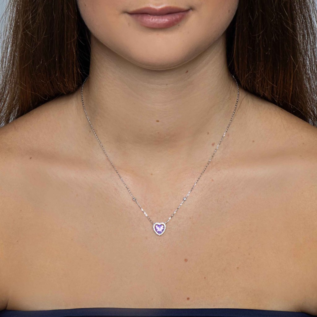Zahalte sa do elegancie a nežného lesku s týmto výnimočným náhrdelníkom zo striebra o rýdzosti 925/1000. Dominantou je srdiečkový prívesok osadený žiarivým ružovým kameňom briliantového brusu, ktorý je lemovaný jemnými čírymi zirkónmi po celom obvode. Ďalšie dva zirkóny sa nachádzajú na retiazke. Pôsobivý dizajn spája luxusný vzhľad s romantickým nádychom. Výsledkom je výrazný, ale zároveň nežný dizajn, ktorý zaujme na prvý pohľad.