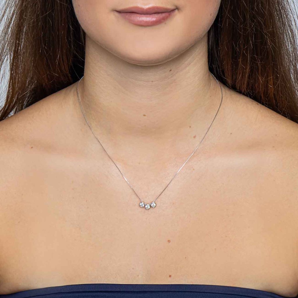 Jemná strieborná retiazka s trojicou precízne brúsených moissanitov, ktoré očaria svojou čistotou a intenzívnym leskom. Minimalistický dizajn v modernom prevedení podčiarkne osobitý štýl – či už ju nosíte samostatne, alebo ako súčasť vrstveného stylingu.