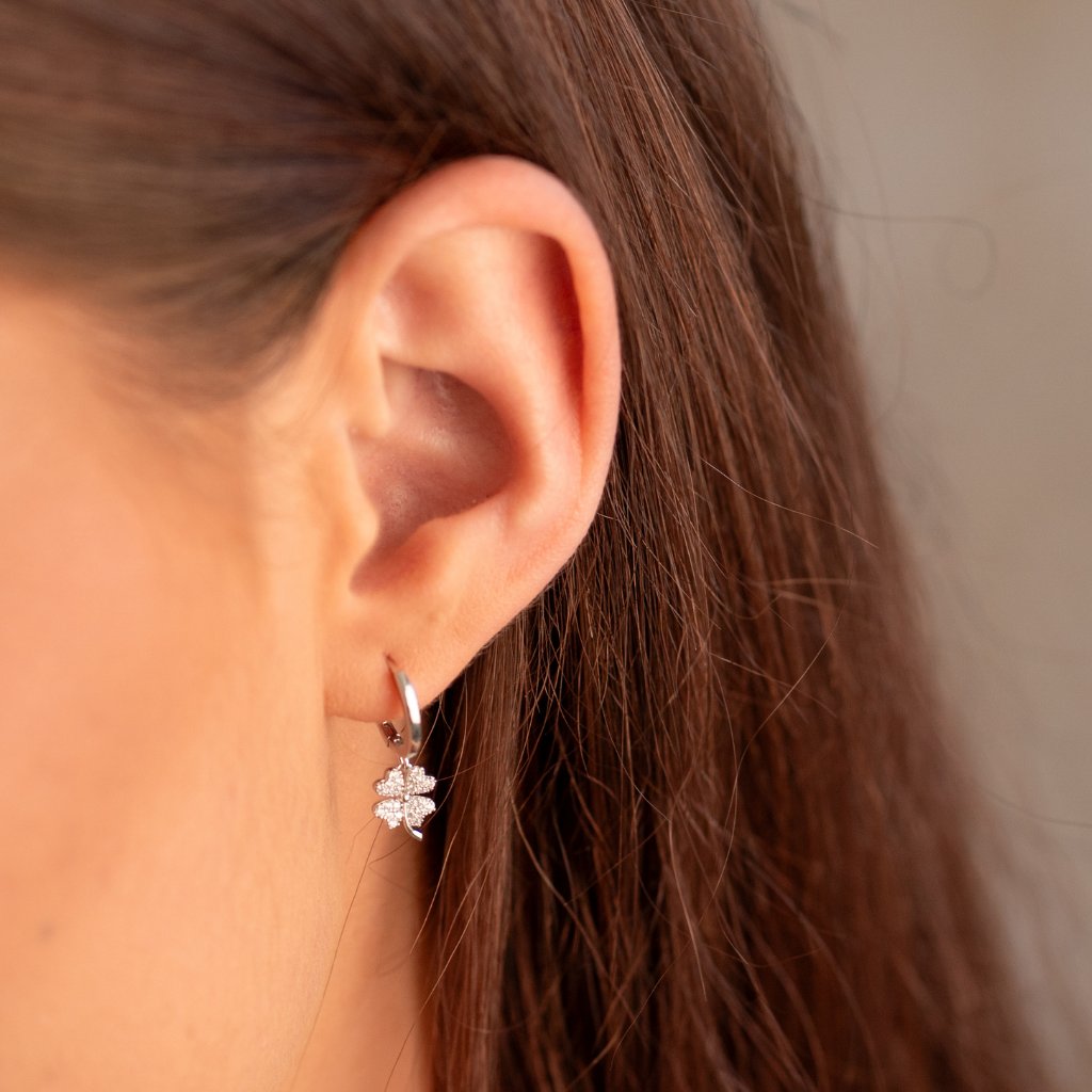 Strieborné náušnice, štvorlístok 1003358