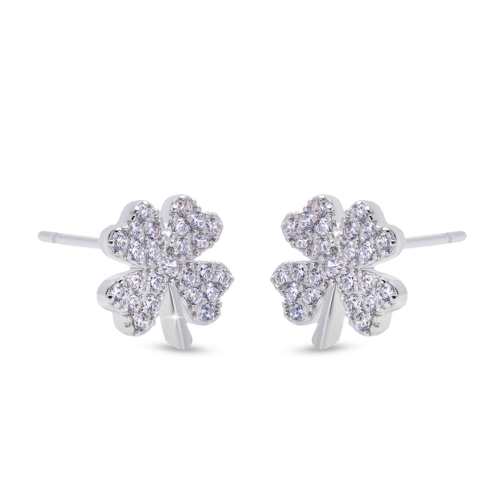 Strieborné náušnice, štvorlístok so zirkónmi 1003357