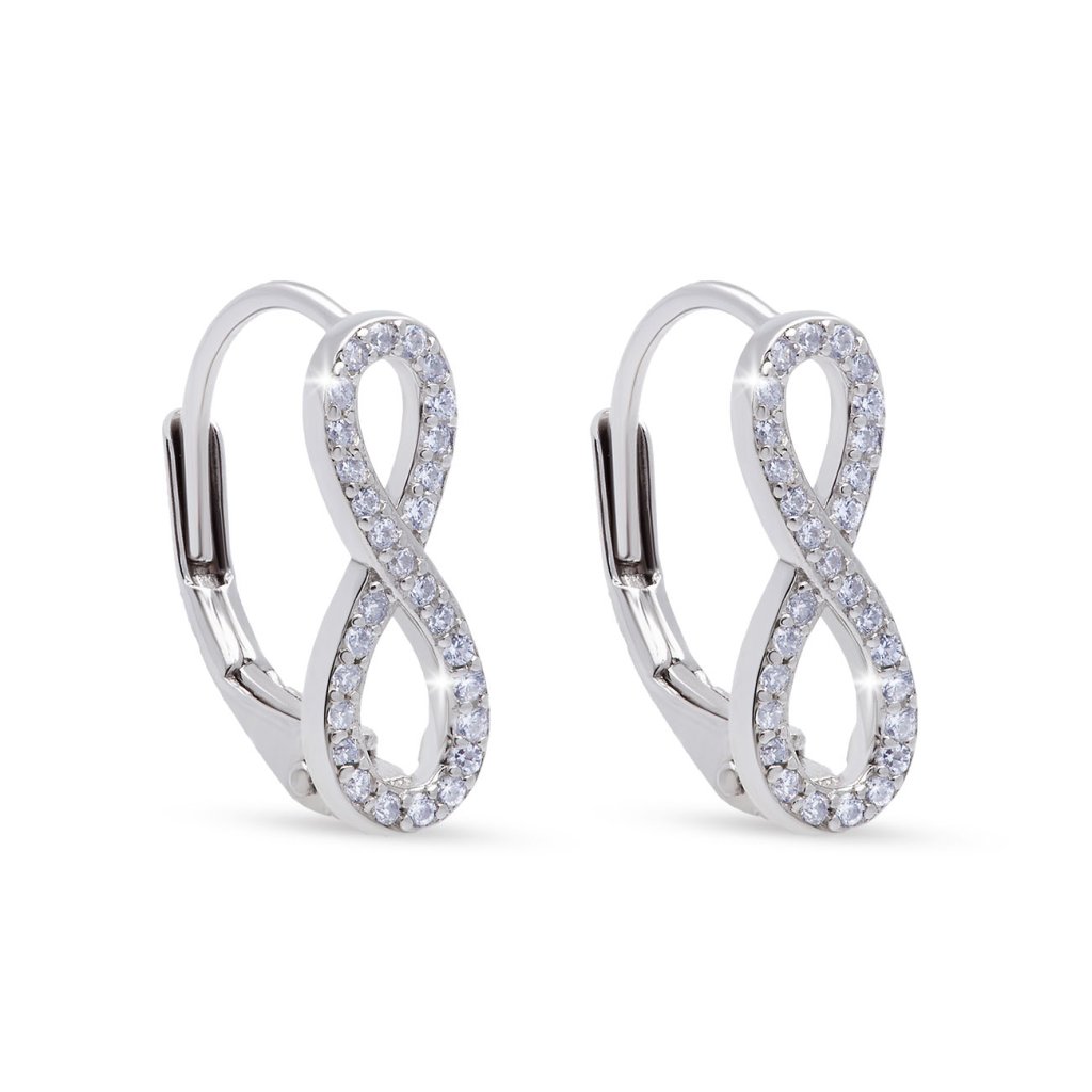 Strieborné náušnice nekonečno so zirkónmi 3630