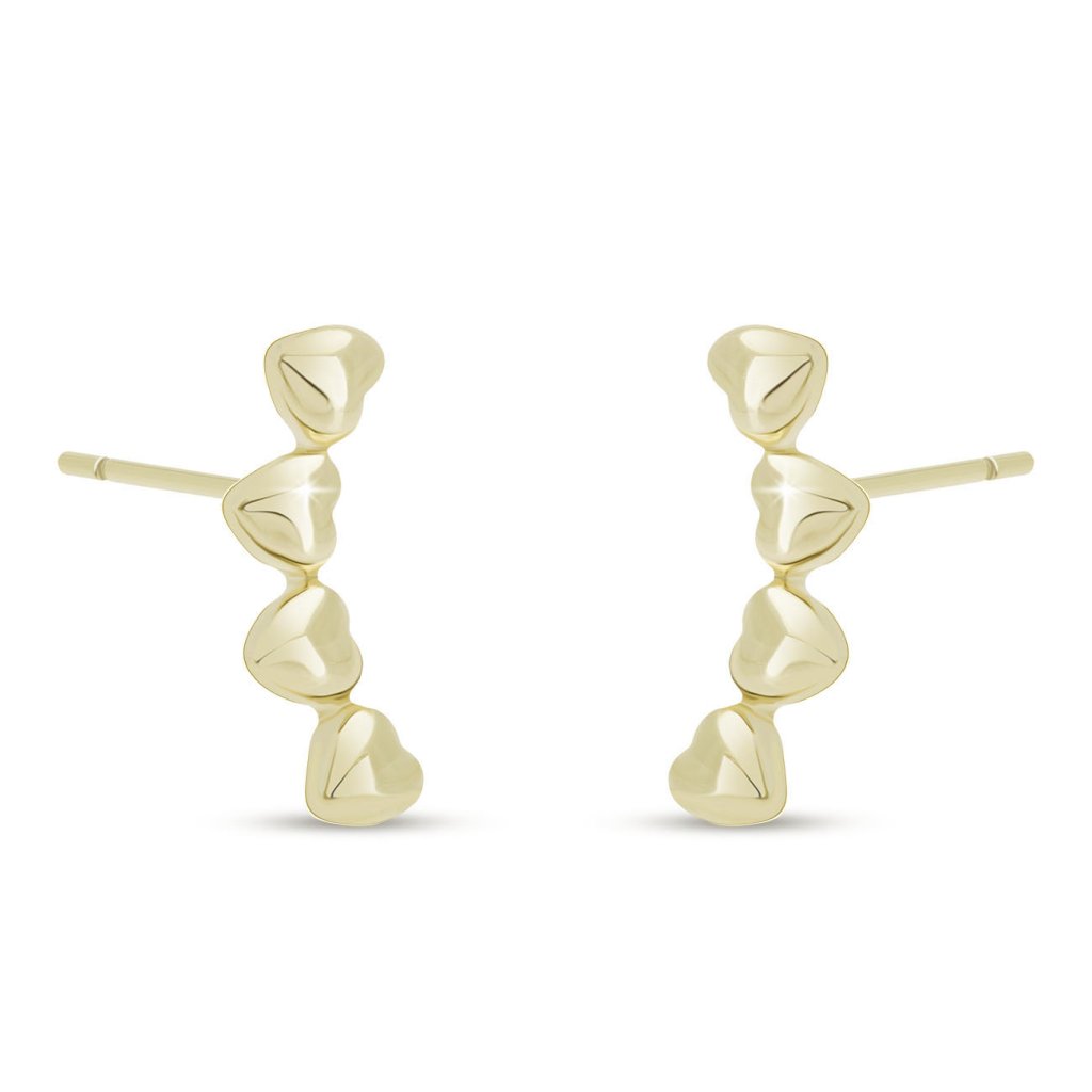 Strieborné náušnice so štyrmi srdiečkami - pozlátené 14k zlatom 3774
