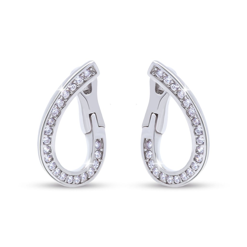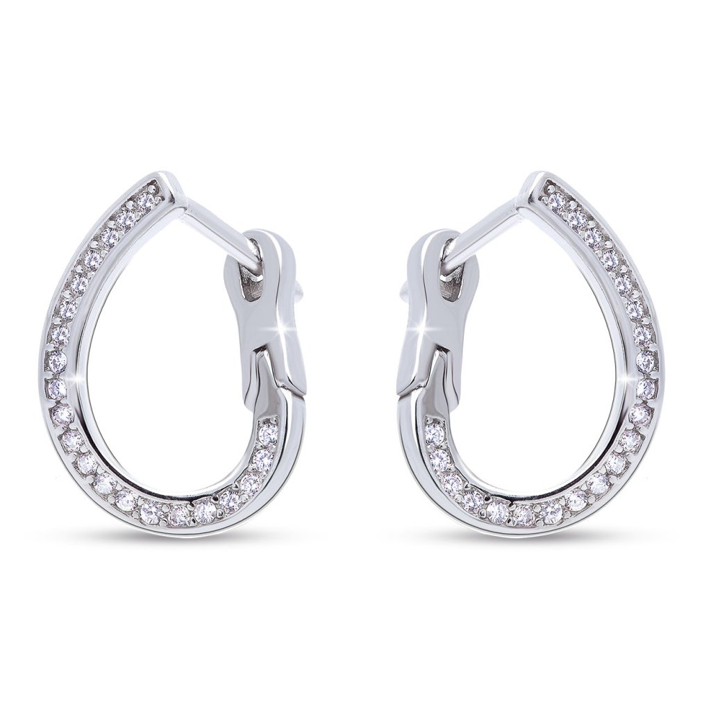 Moderná elegancia v tvare kvapky. Tieto strieborné náušnice zaujmú jemne zaobleným dizajnom a líniou trblietavých čírych zirkónov, ktoré zdobia prednú časť šperku. Kvapkovitý tvar pôsobí veľmi ženským dojmom a lichotí každému tvaru tváre.