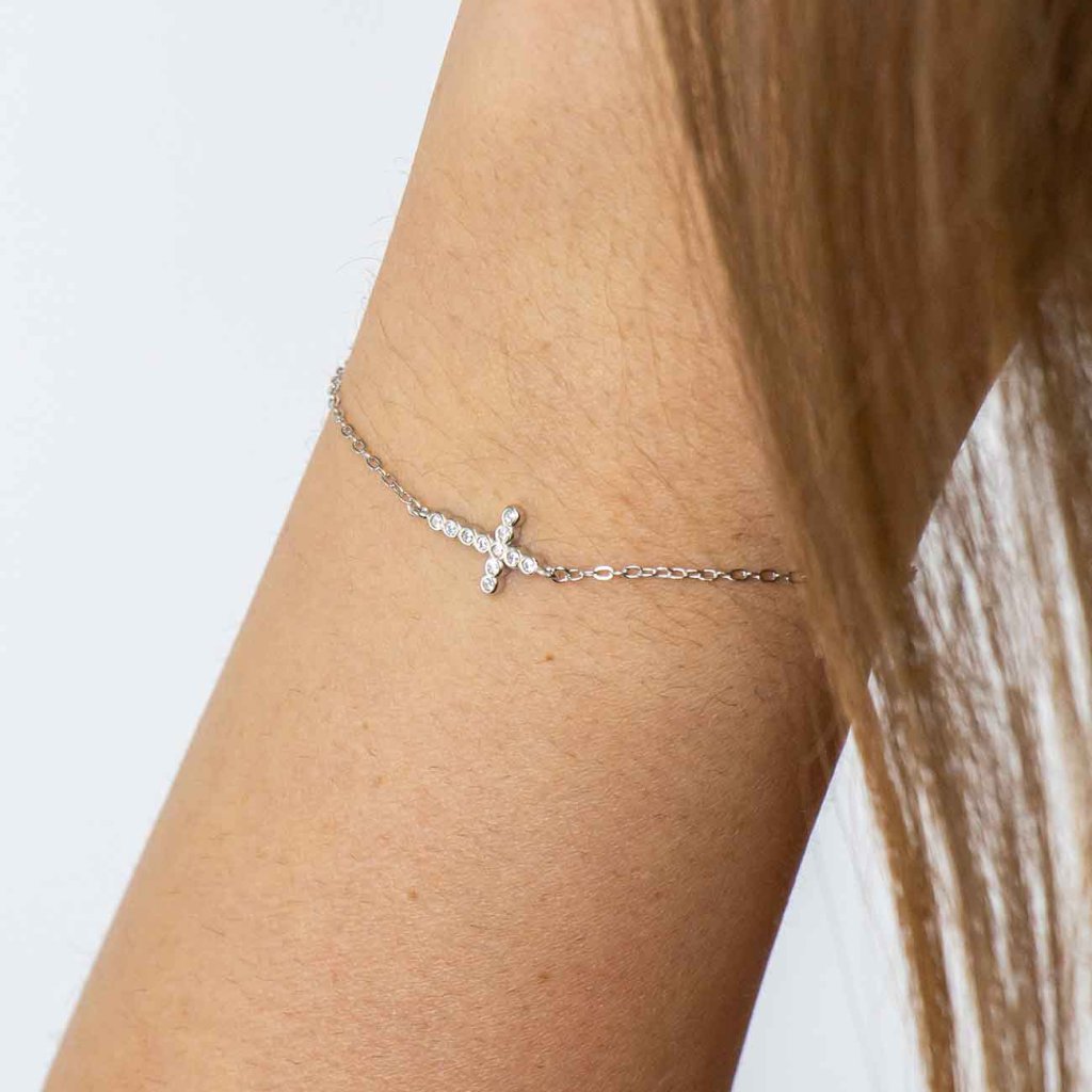 Strieborný náramok s krížikom 2857