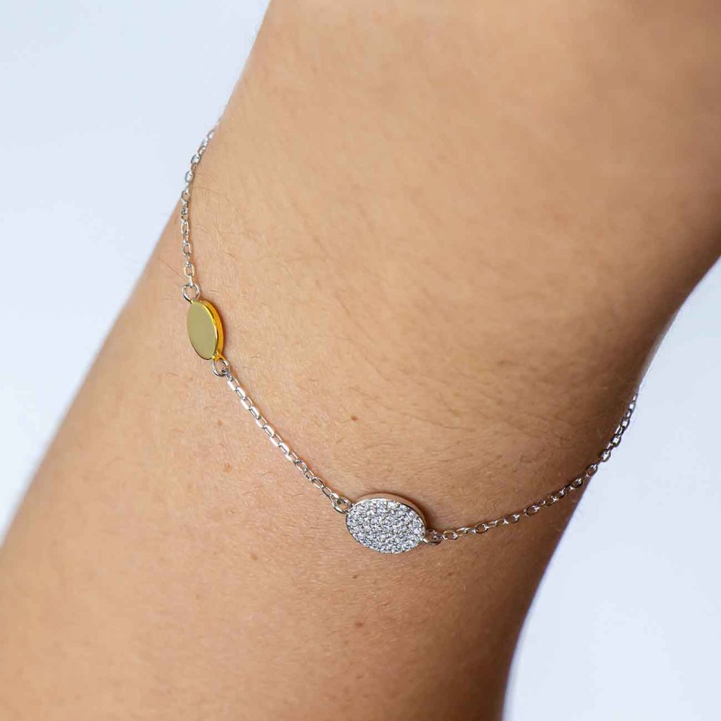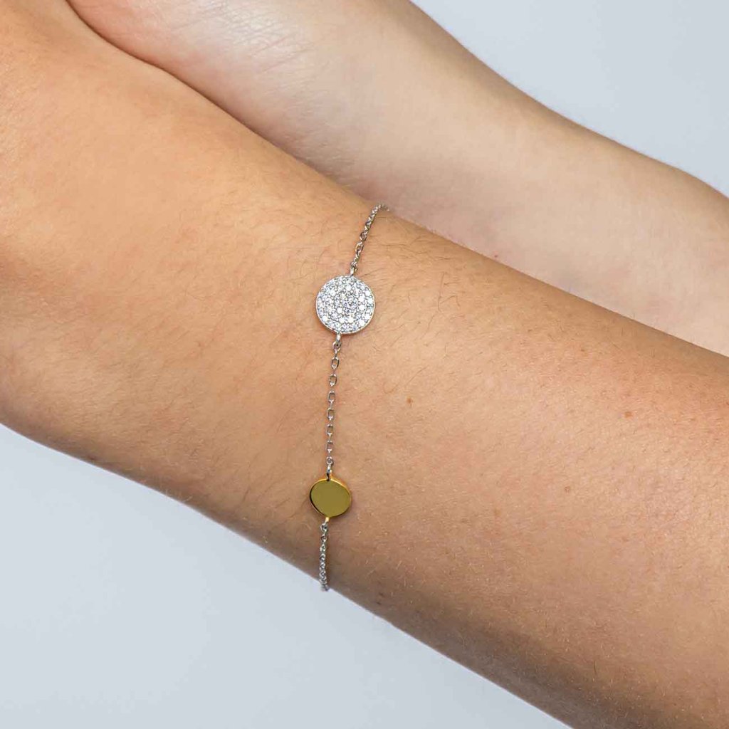 Strieborný náramok s pozláteným a zirkónovým kolieskom 2850