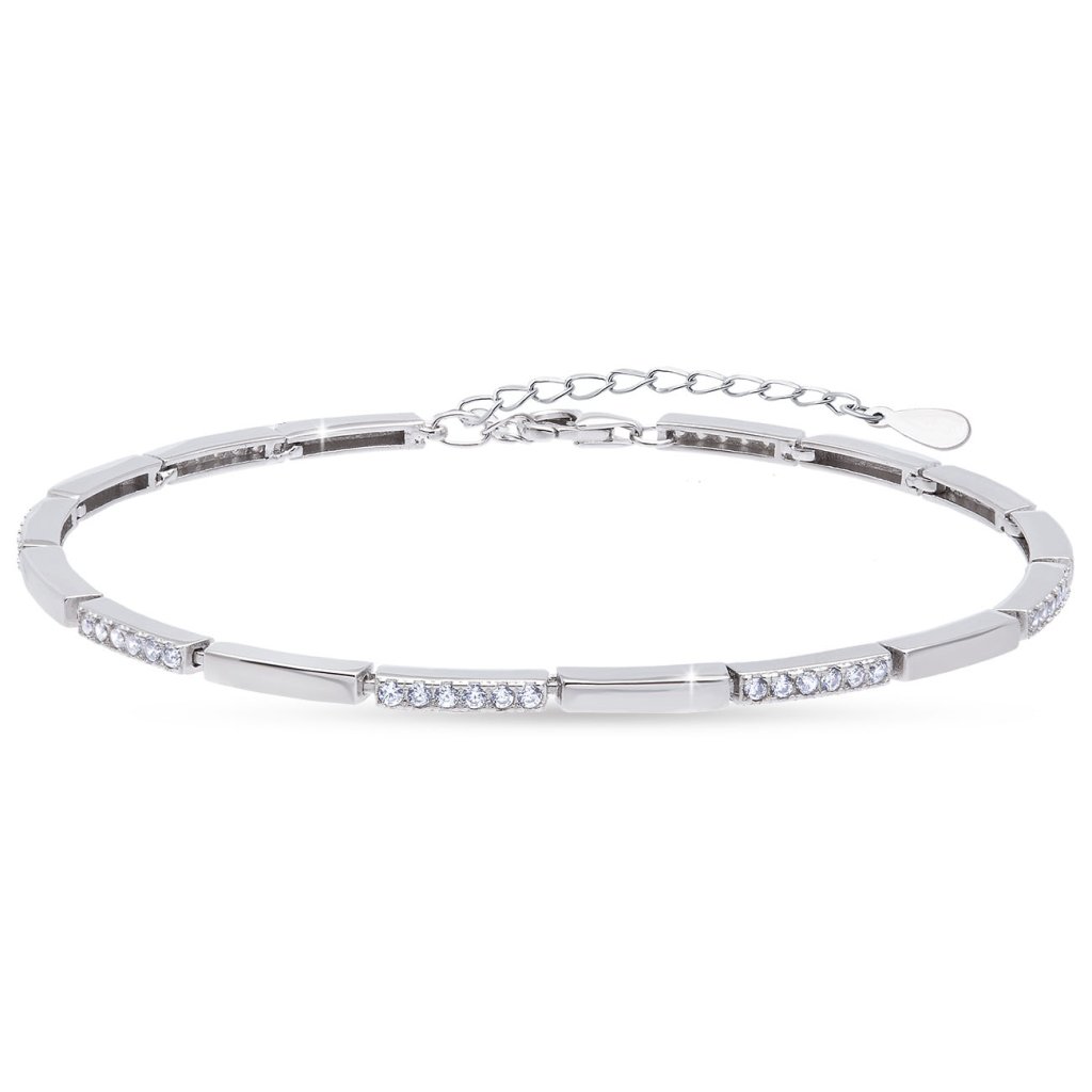Luxusný a sofistikovaný – tento dámsky náramok je tvorený hladkými segmentmi, ktoré sa pravidelne striedajú s článkami osadenými čírymi zirkónmi. Jeho jemný trblietanie a moderný dizajn z neho robia ideálny doplnok na každodenné nosenie aj slávnostné príležitosti.