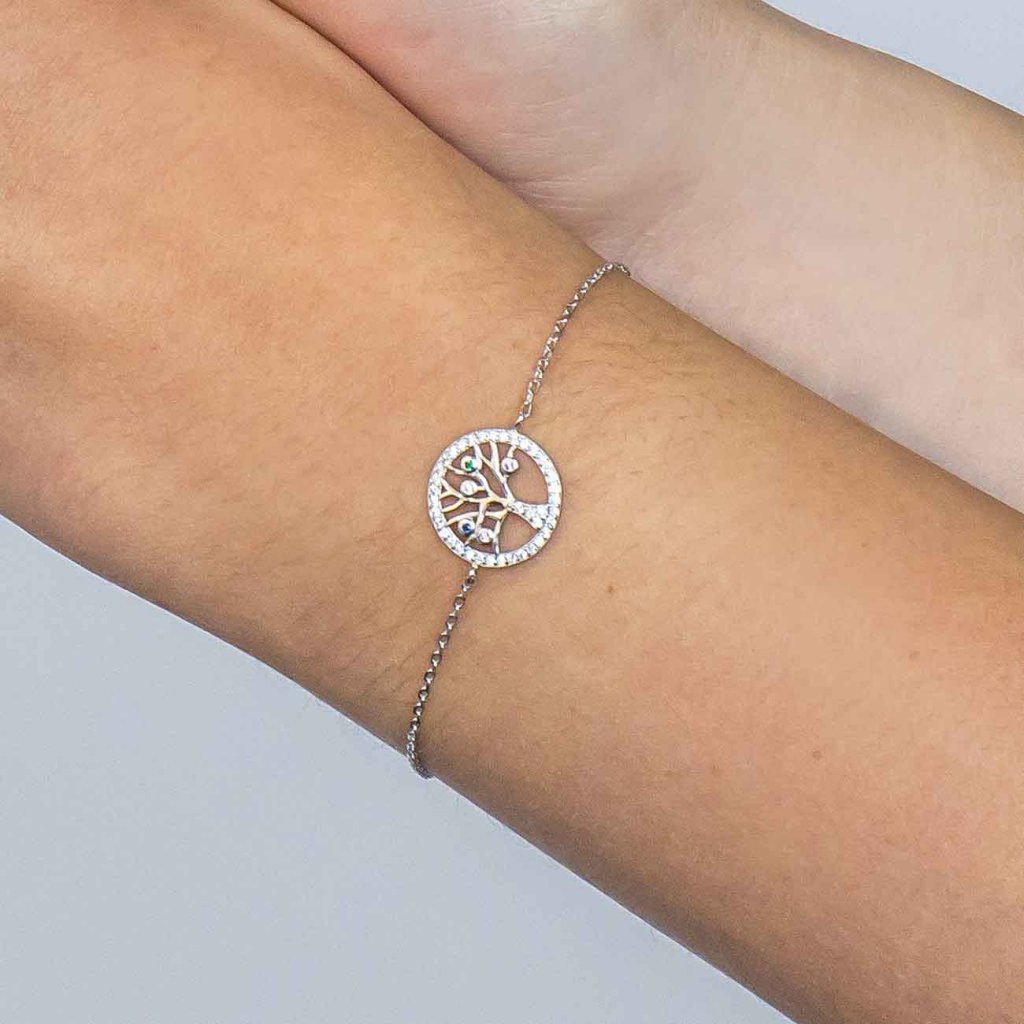 Jemný strieborný náramok so symbolom stromu života vyžaruje harmóniu, rast a prepojenie so všetkým živým. Zdobený drobnými zirkónmi a jemnými modrými akcentmi pôsobí elegantne a zároveň duchovne. Perfektný darček pre tých, ktorí hľadajú šperk s hlbším významom.