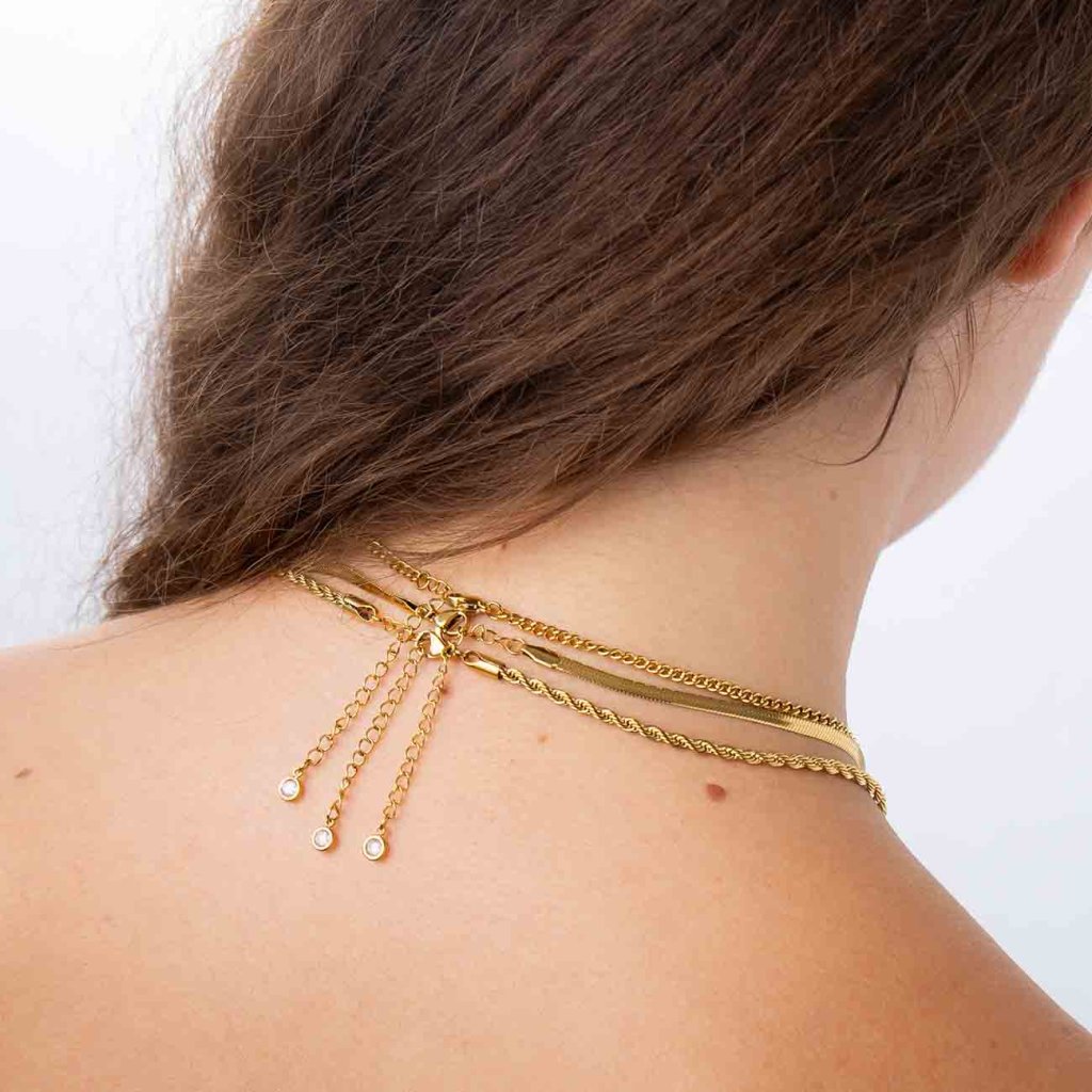 Štýlová sada troch retiazok v ikonických dizajnoch Cuban, Snake a Rope vyniká svojou variabilitou aj elegantným vzhľadom. Každý z retiazok je vyrobený z kvalitnej chirurgickej ocele s 14k pozlátením, ktorá zaisťuje dlhotrvajúci lesk a odolnosť voči opotrebovaniu. Nosiť ich môžete spoločne alebo jednotlivo – podľa nálady a príležitosti.