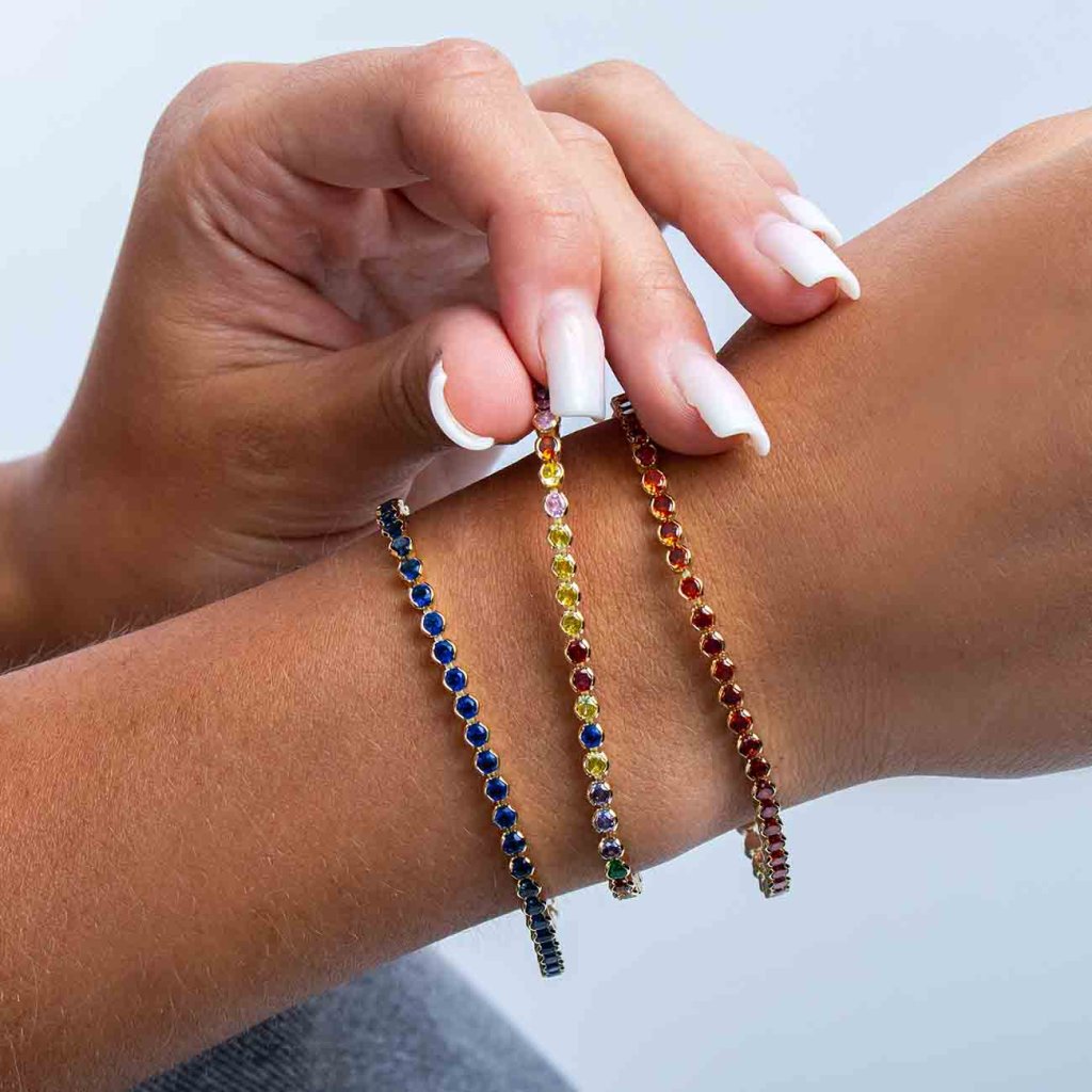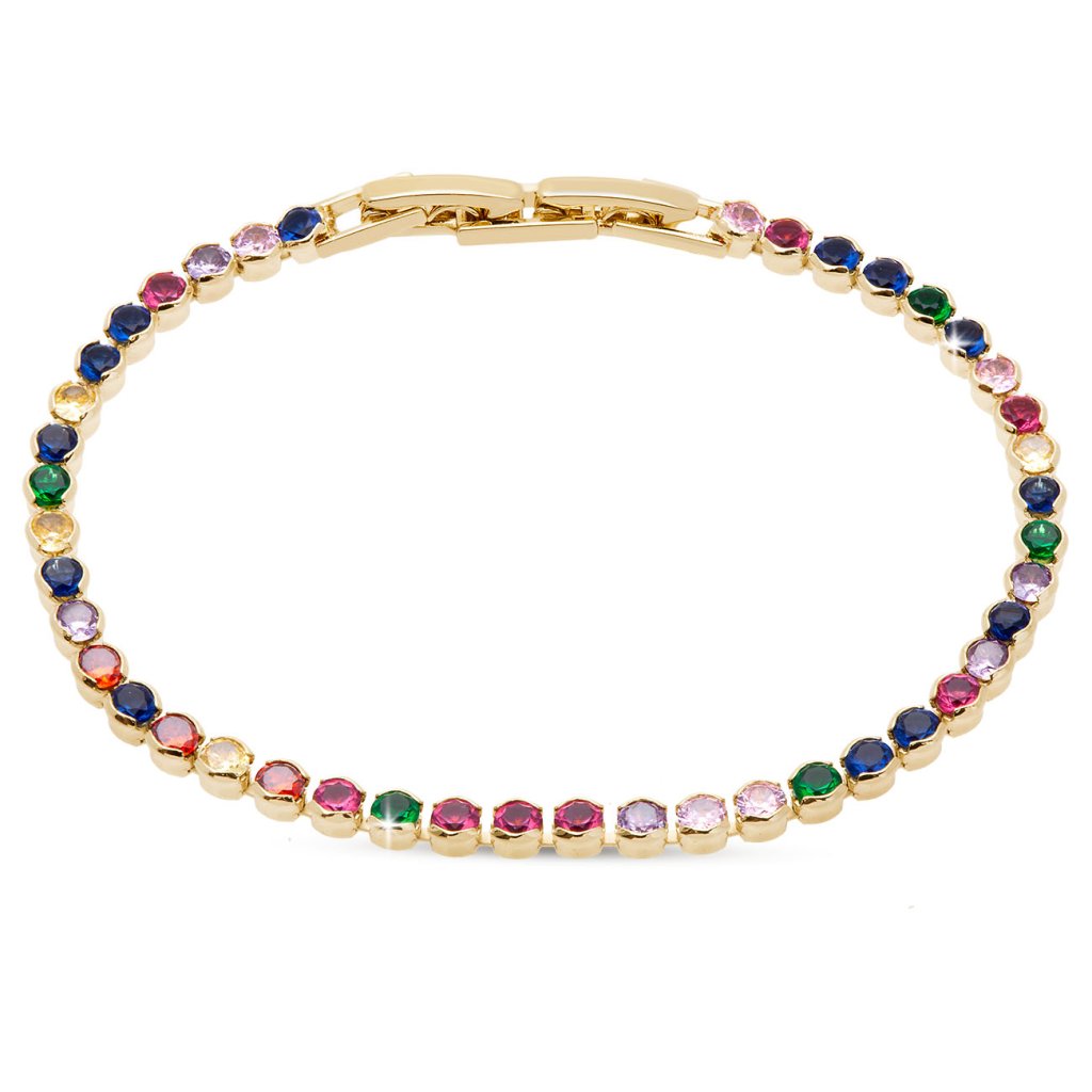 Rozžiarte svoj outfit žiarivými farbami! Tento elegantný tenisový náramok je osadený kubickými zirkónmi v rôznych farebných odtieňoch, ktoré spolu vytvárajú hravý a moderný vzhľad. Vďaka jemnej konštrukcii a kvalitnému prevedeniu je vhodný na každodenné nosenie aj slávnostné príležitosti.
