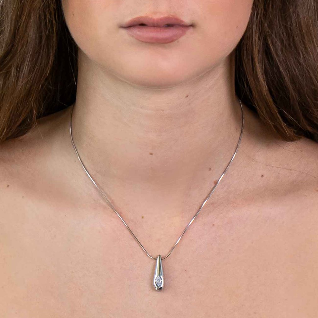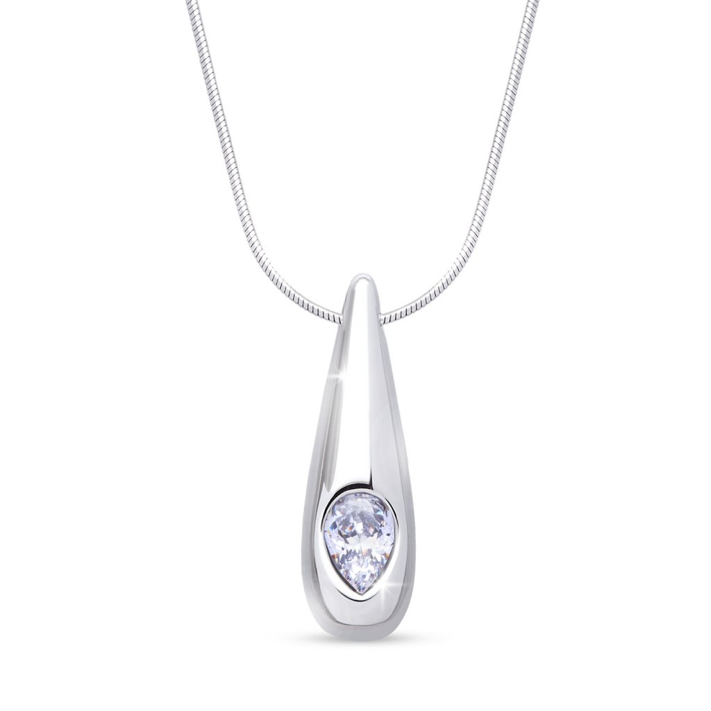 Retiazka z chirurgickej ocele s príveskom lesklej kvapky osadenej kubickým zirkónom tiež v tvare kvapky.