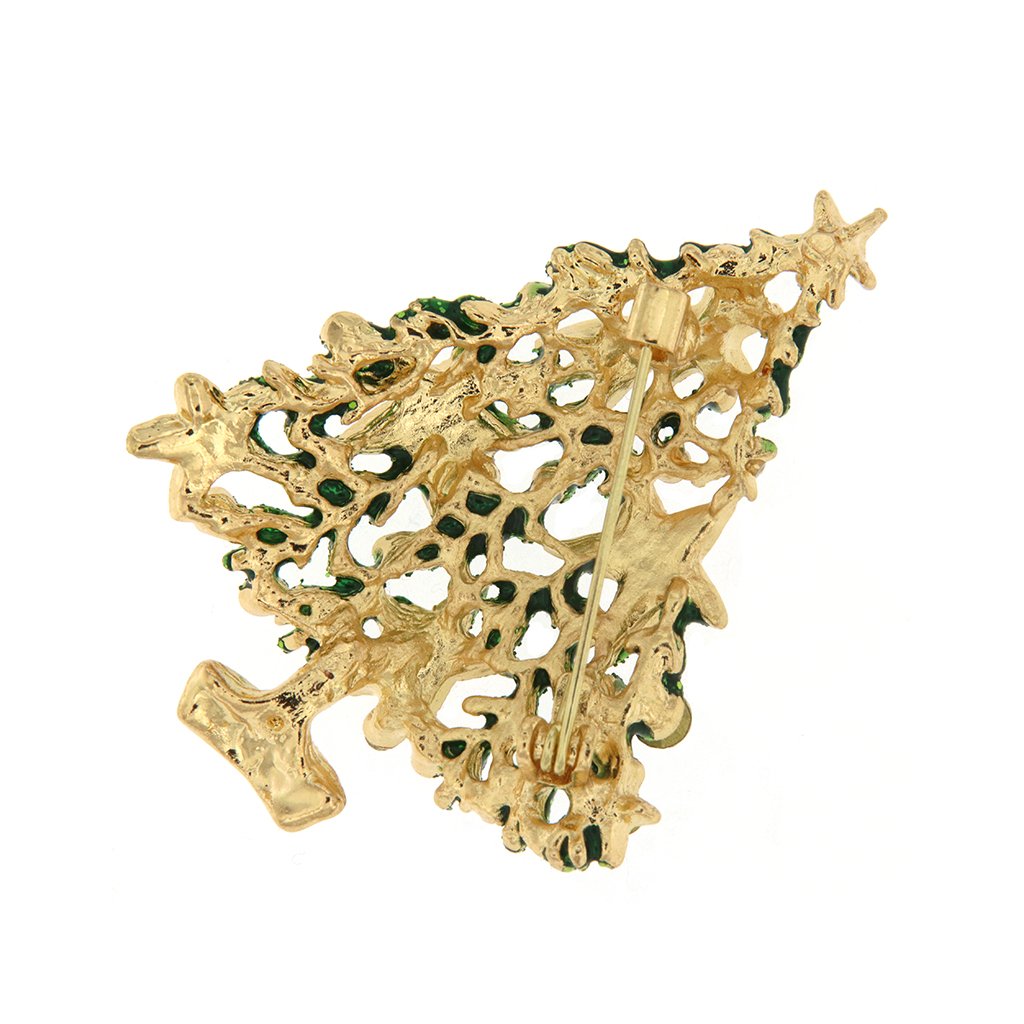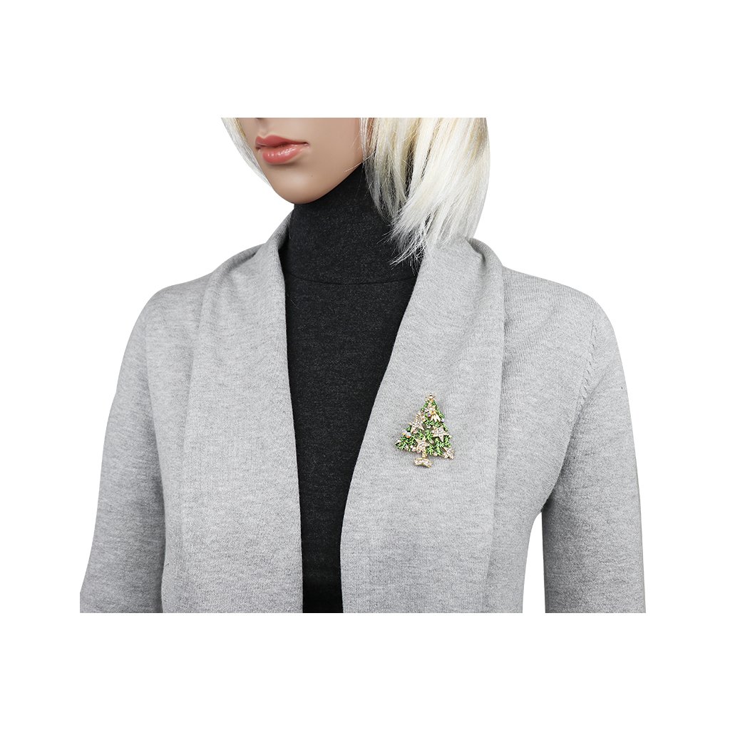 - Vianočná brošňa so zirkónmi - stromček s hviezdami, zlatej farby.